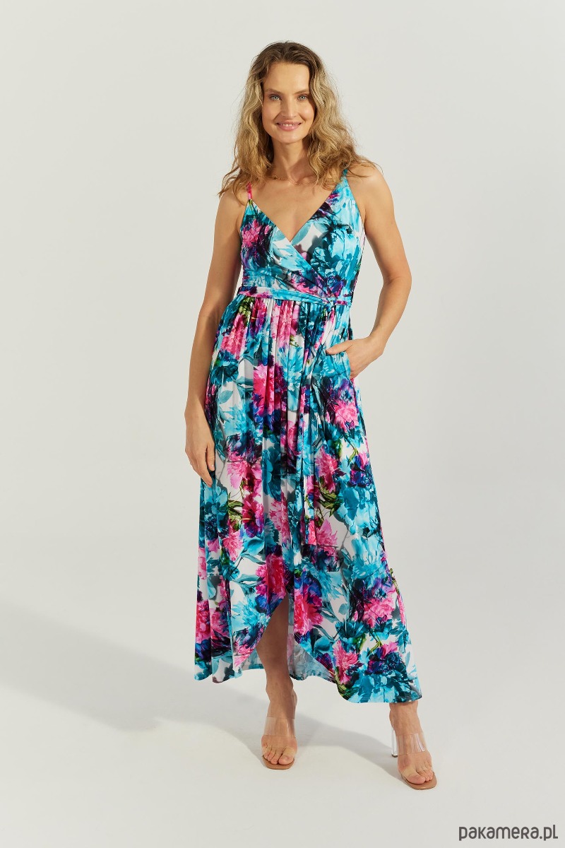 Sukienka na cienkich regulowanych ramiączkach.