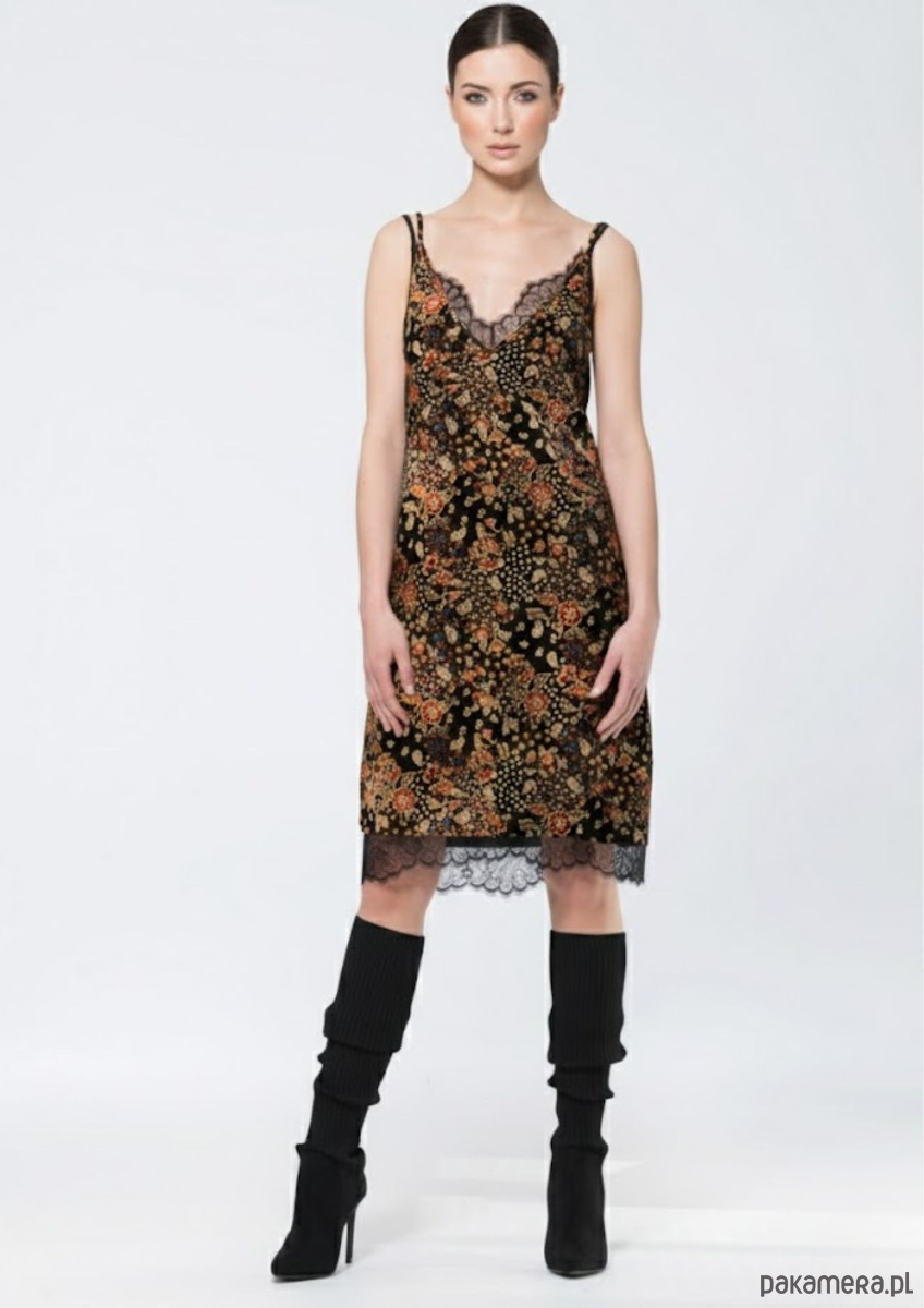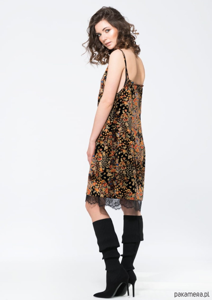 Jeśli chcesz rozpocząć dzień z uśmiechem na ustach, bez wahania możesz sięgnąć po welurową sukienkę w kwiaty. Uszyłam ją nie tylko z myślą o letnich wieczorach! Fantastycznie sprawdzi się również jesienią i zimą, jeśli założysz pod nią prosty, czarny golf. Możesz postawić także na bardziej grunge’ową stylizację i dobrać do niej biały T-shirt oraz ciężkie buty.