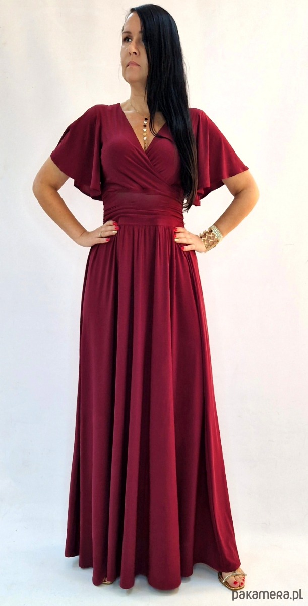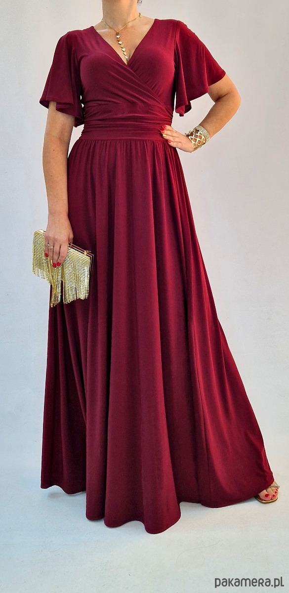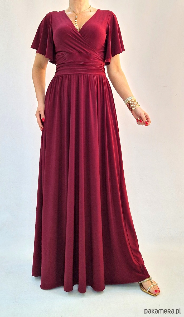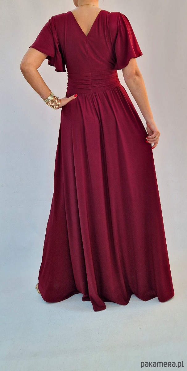 Sukienka wieczorowa maxi bordowa drapowana 36-56
