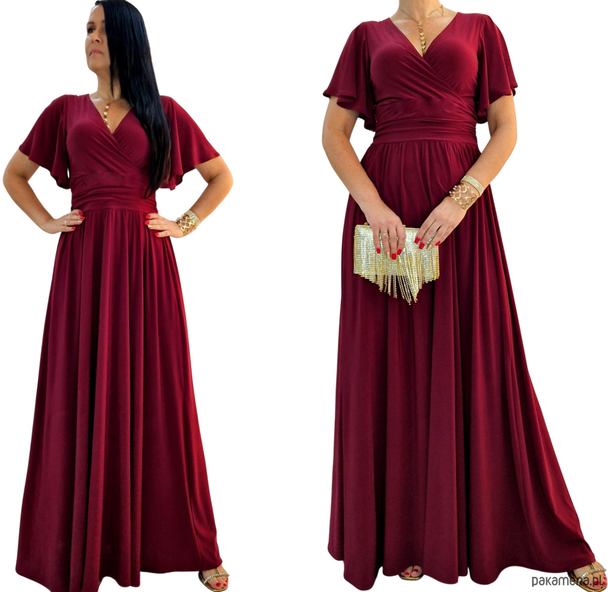 Sukienka wieczorowa maxi bordowa drapowana 36-56