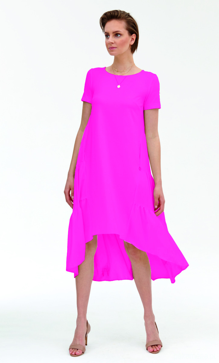 Sukienka Debora z dzianiny i tkaniny. Dzianina na przodzie miękka i lekko mięsista, oczywiście od polskiego producenta . Tkanina na tyle, uszyta w bogate falbany. Krótkie z dzianiny rękawki. Szyja z dekoltem okrągłym, zapinanym na tyle na guzik. Kieszenie w szwach. Naszywka ozdobna. Dostępna jeszcze w kolorze ecru i zieleni.