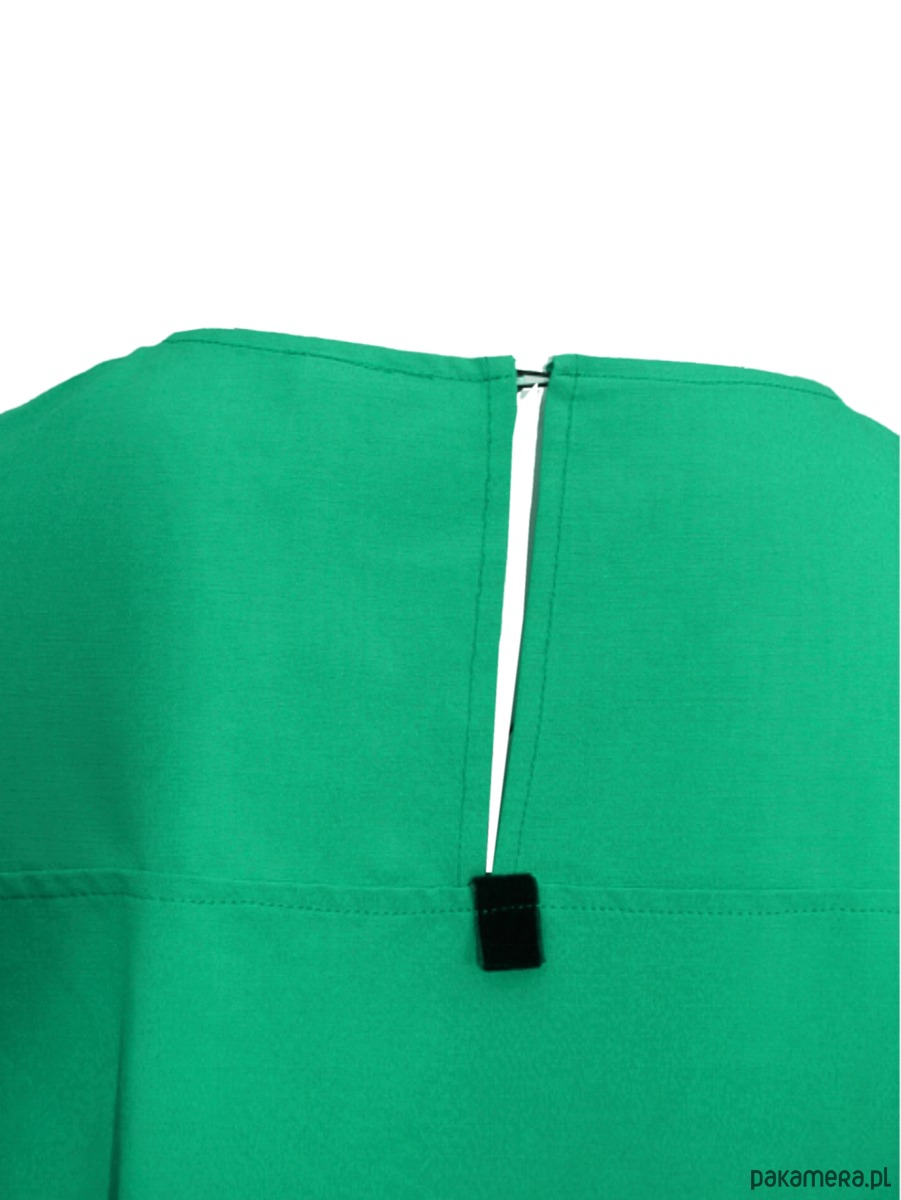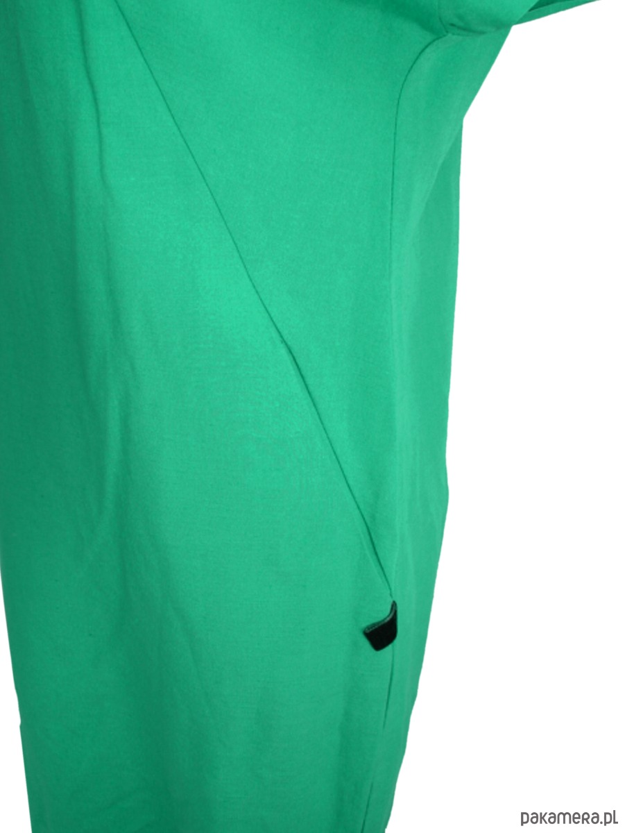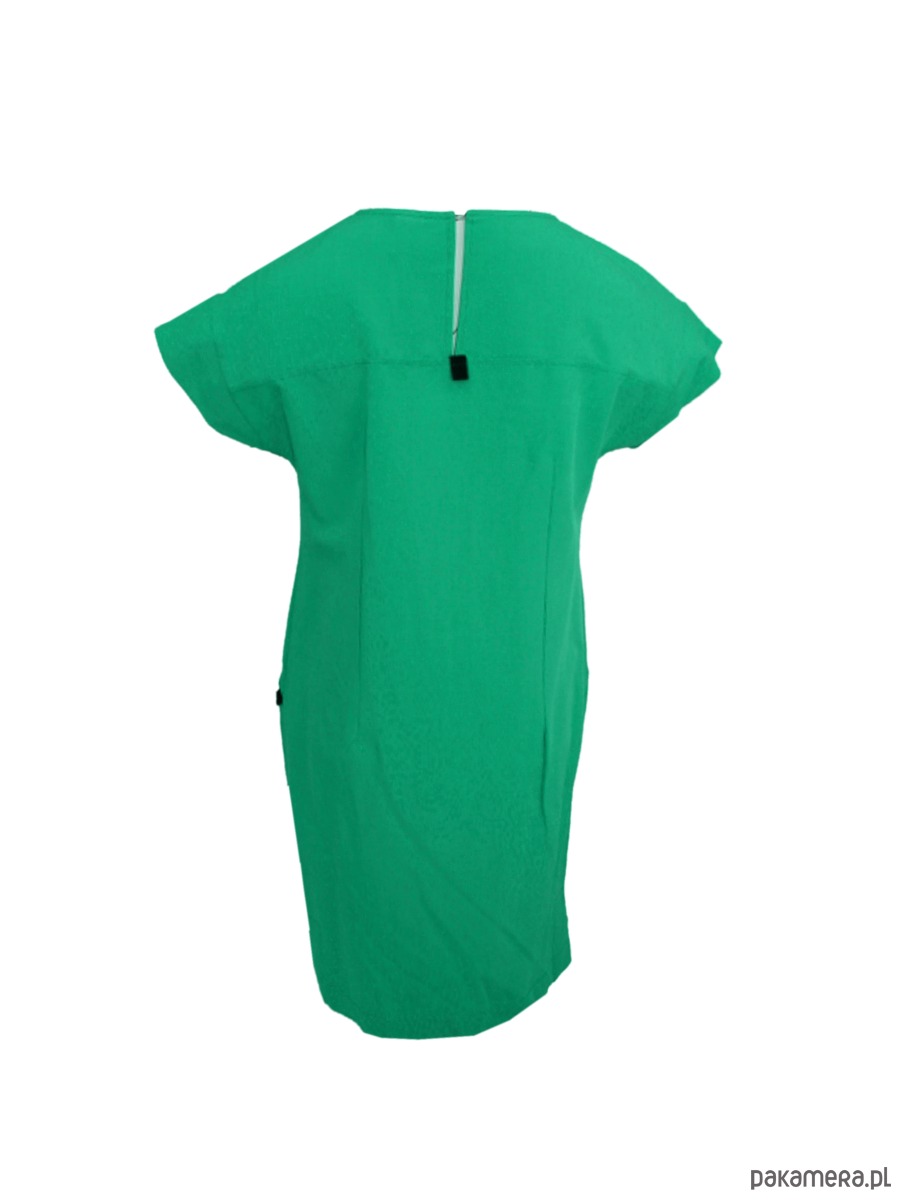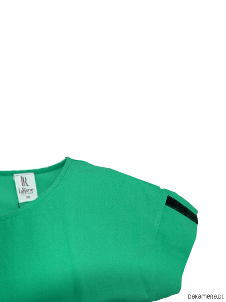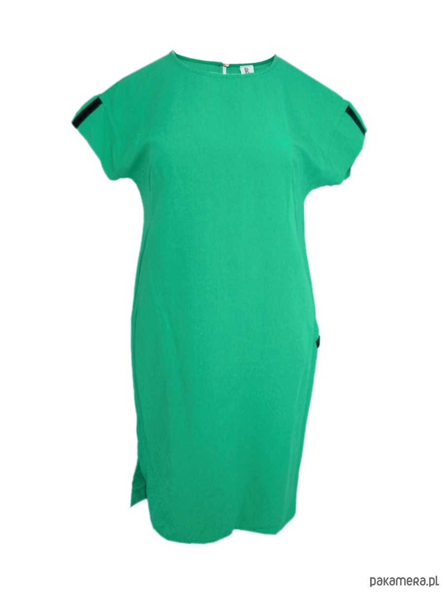 Sukienka z kontrastową aksamitną taśmą. Tkanina to len z wiskozą, z lekką strukturą. Przede wszystkim casualowy charakter oddaje prosty i swobodny krój. Ozdobne zaszewki wyszczuplają sylwetkę. W cięciu zaszewek są umieszczone kieszenie. Ozdobna taśma w paseczki.