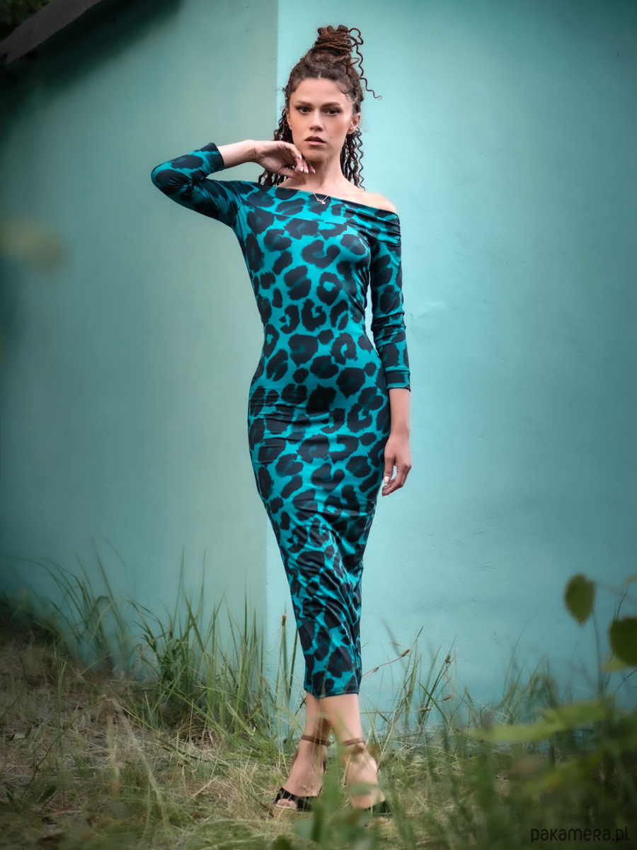 Deseń "Deep Tropic" - autorski druk. Nowoczesna interpretacja klasycznej panterki w odcieniach turkusu i głębokiej czerni.