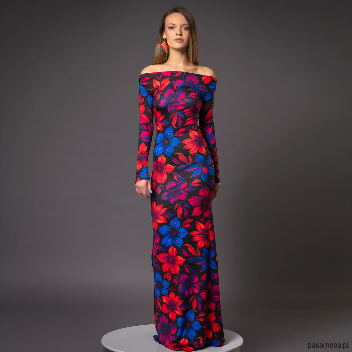 Sukienka z odsłoniętymi ramionami - Julia Maxi Flower Power