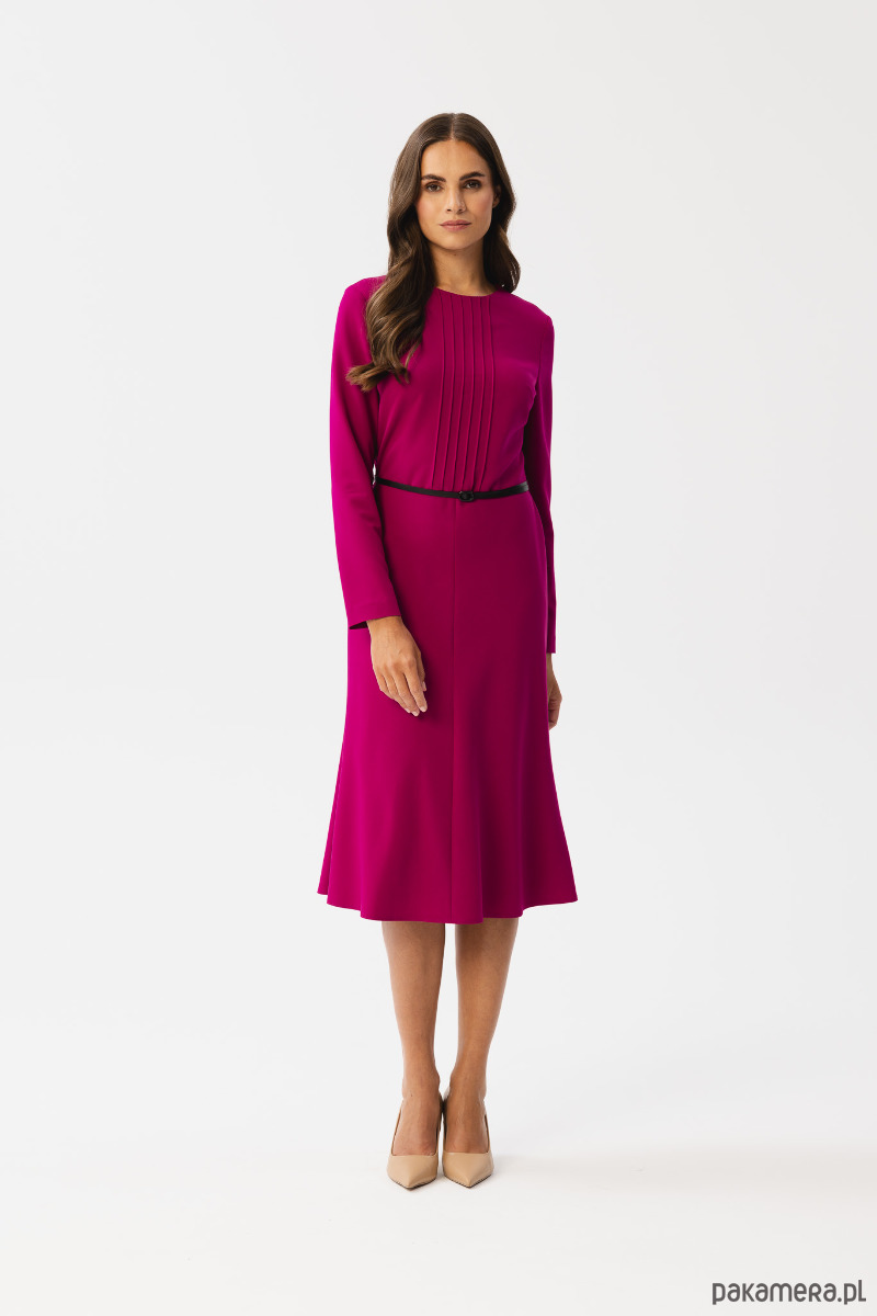 sukienka z dekoracyjnymi przeszyciami na dekolcie