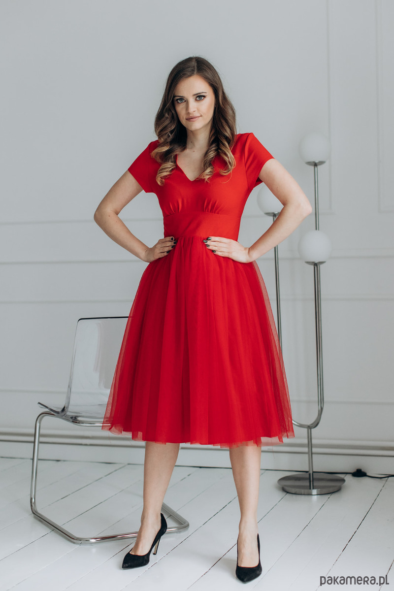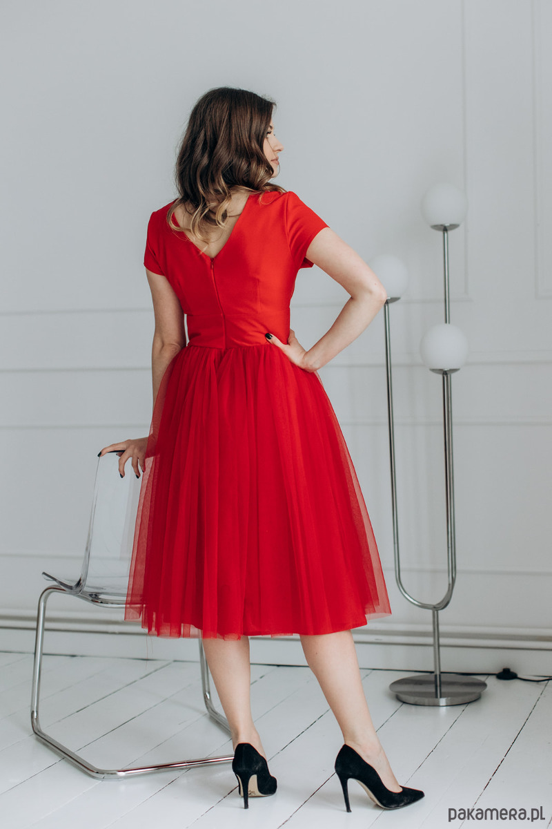 Sukienka z tiulem, NOEMI LADY, czerwona