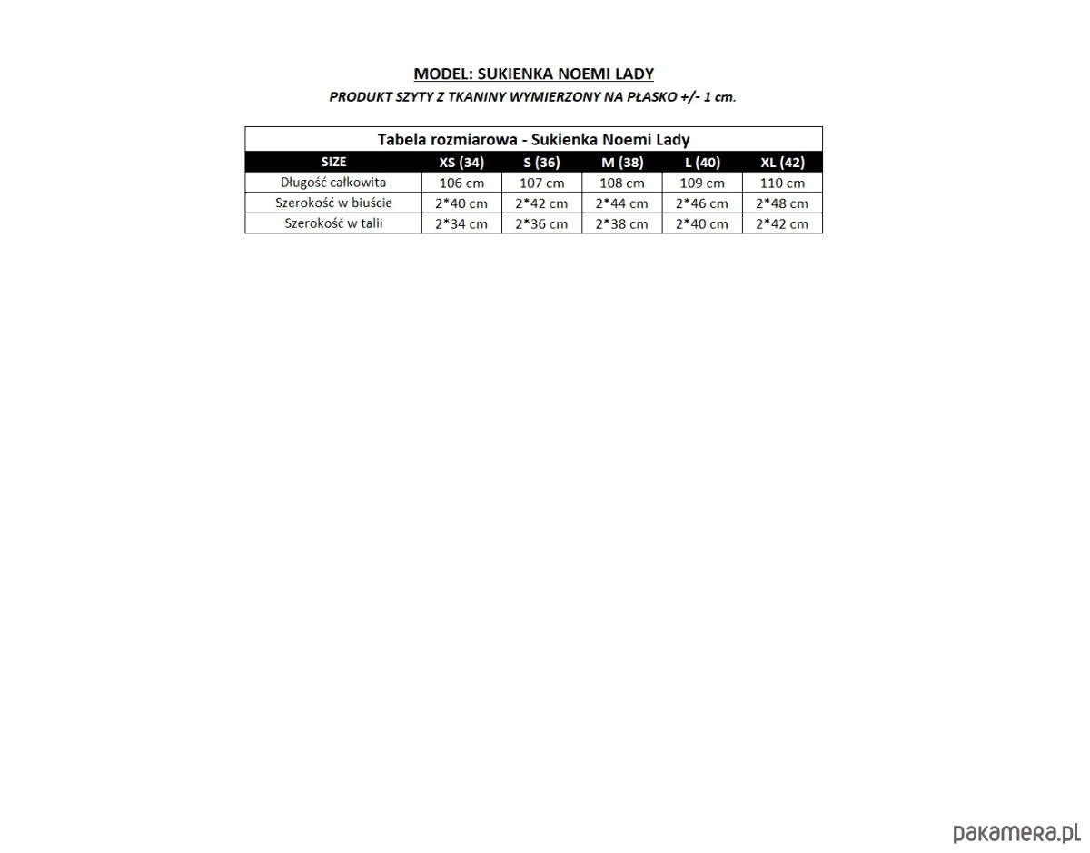 Model Noemi Lady dostępny jest w rozmiarach od XS do XL tabela rozmiarowa dodana jako ostatnie zdjęcie.