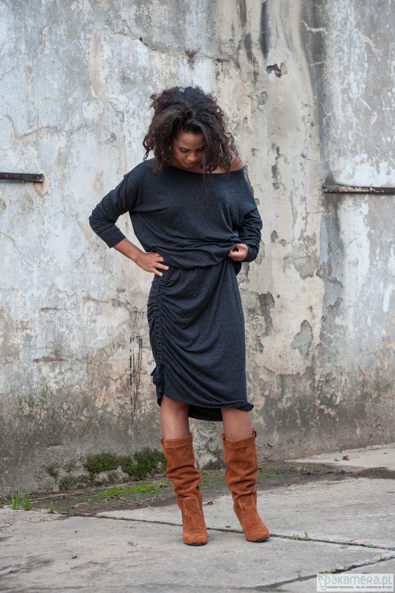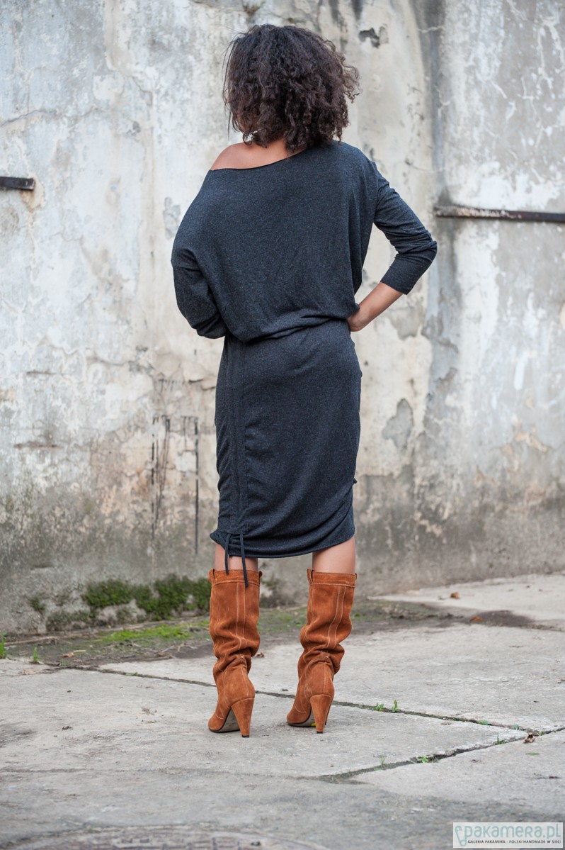 Sukienka wprost stworzona na jesienne dni. Do pełnego outfitu wystarczą kozaczki i skórzana kurtka by uzyskać look pełen nonszalanckiej elegancji. Sukienka została uszyta z angory, jest niezwykle miękka i pięknie układa się na każdej sylwetce. Asymetryczny krój pozwala na różne wariacje - z paskiem, z podwiniętym dołem (by uzyskać efekt tuniki mini), wystarczy odrobina fantazji! Rozmiar uniwersalny Rozmiar uniwersalny Materiał stworzony metodą 'drapania' - angora, skład: 95% wiskoza plus 5% elastan. Wyjątkowo miękki i przyjemny w dotyku. Prać w temperaturze 30 stopni!