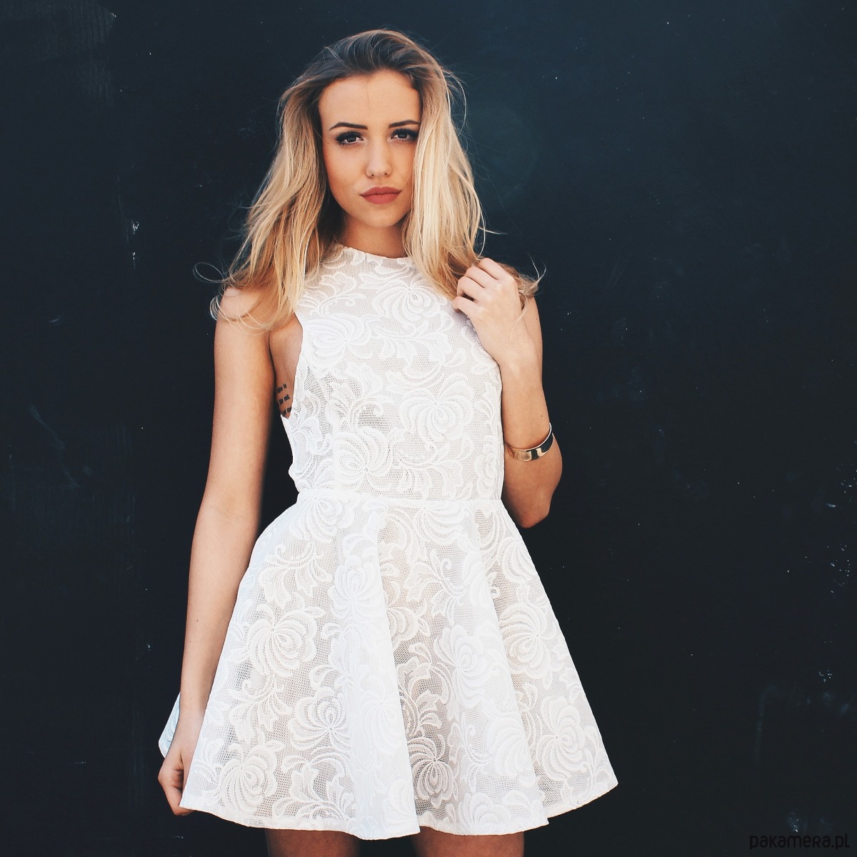 Koronkowa sukienka z paskami na dekolcie