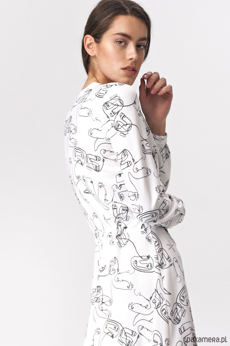 Jasna sukienka maxi z modnym printem w twarze to świetna propozycja dla miłośniczek stylizacji kobiecych, romantycznych oraz boho. W polączeniu ze szpilkami i żakietem może stanowić nietuzinkową alternatywę soft-office dla klasycznych stylizacji biurowych.