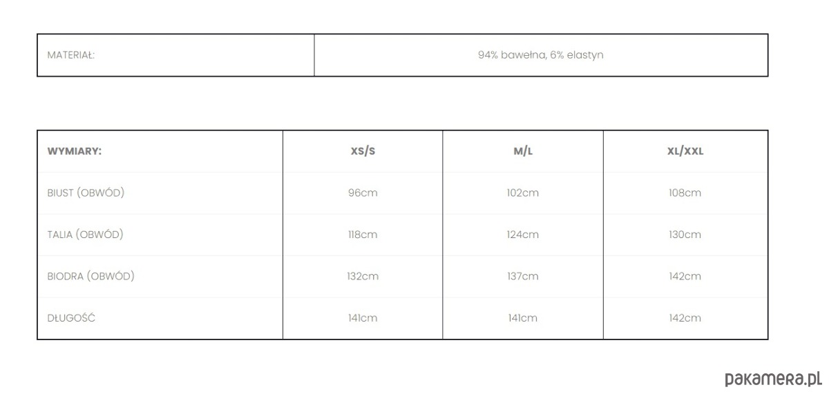 Materiał to doskonale Wam znana bawełniana dzianina z elastanem. Gramatura 200gr/m2 gwarantuje doskonałą gęstość i jakość dzianiny, dobre krycie, miękkość i elastyczność.