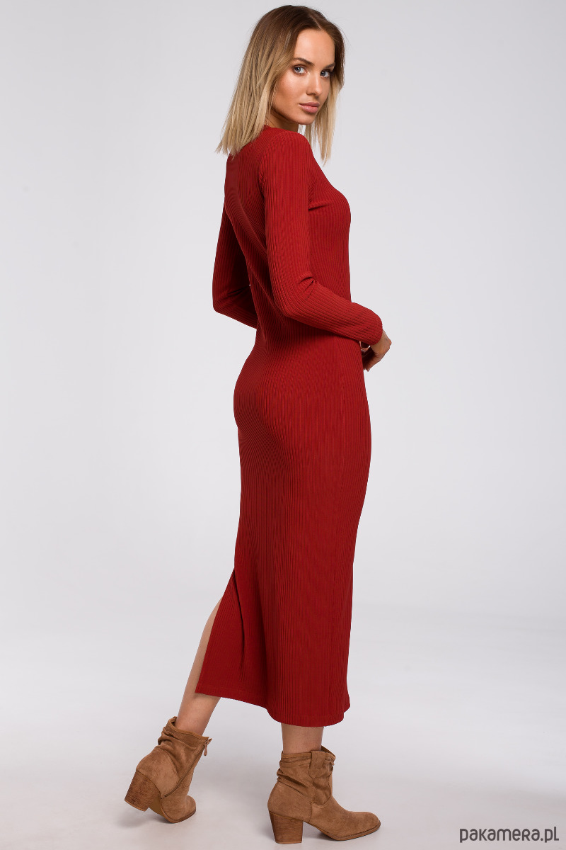 • dopasowana sukienka z długimi rękawami i wysokim rozcięciem na nogę
