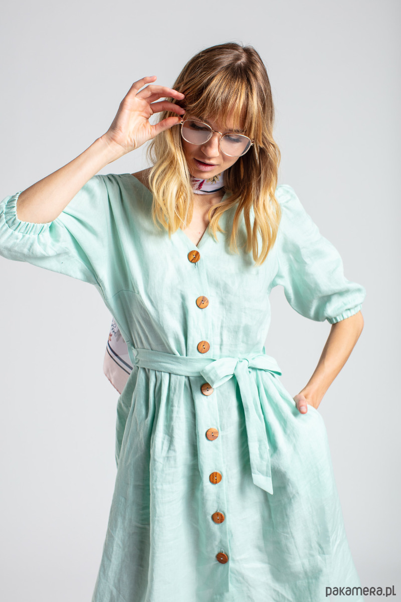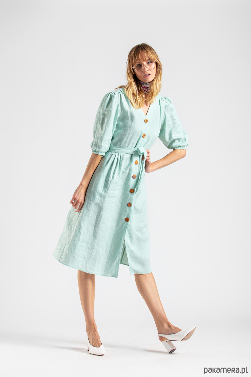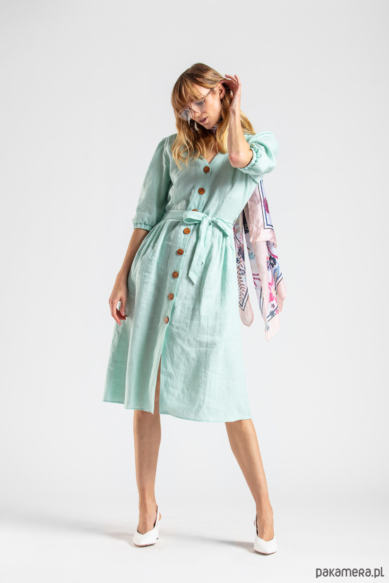 Piękna sukienka o klasycznym kształcie. Wykonana w 100% z wysokiej jakości lnu. Idealna do całorocznych stylizacji, ale szczególnie w okresie wiosna-lato.