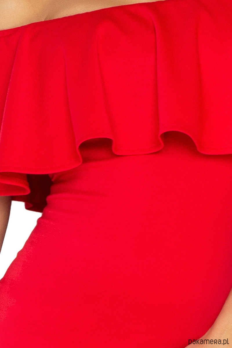 Sukienka z falbanką - czerwona hiszpanka. Zapinana z boku na zamek kryty. Marka numoco.