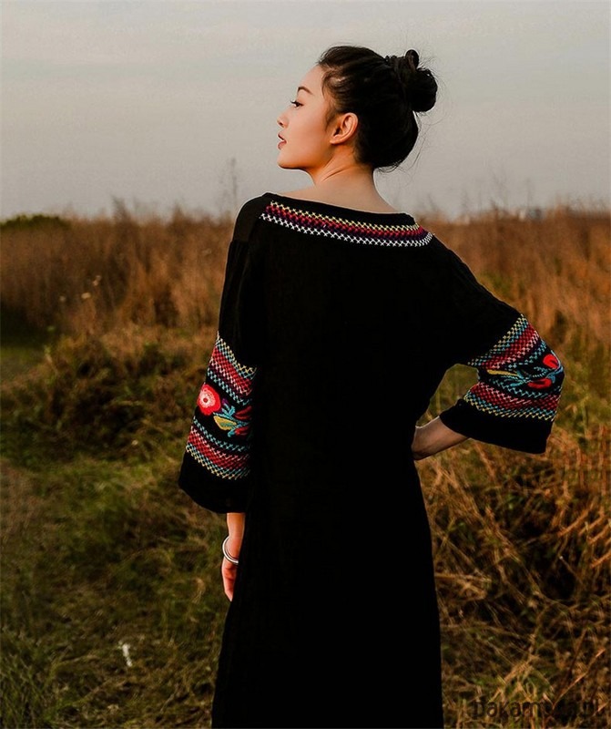 haftowana sukienka bawełniana w stylu boho orient-sukienka sprowadzana ze wschodu, cudna, hafty wyraziste, sukienka rozmiar M, wymiary w biuście 100cm, długość rękawa 3/4-42cm, w pasie 86cm, długość całości 130cm, polecam pojedyncza sztuka- granatowa