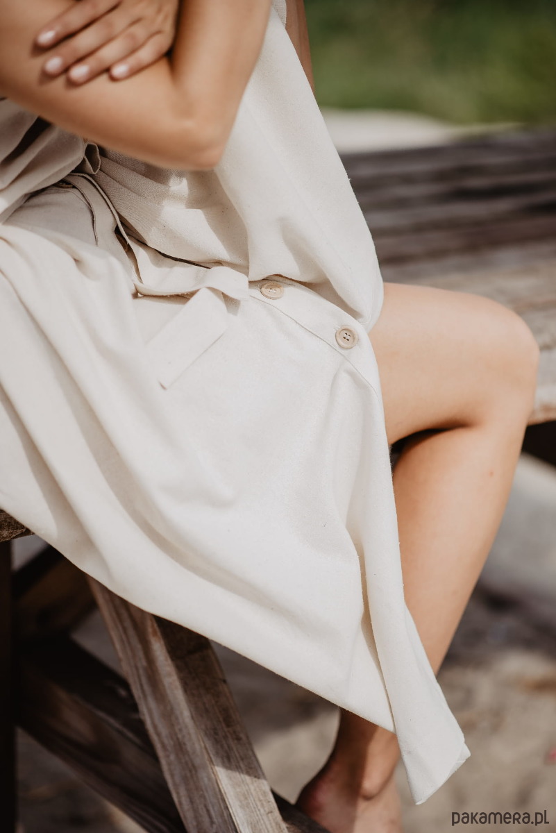 Sukienka z surowego jedwabiu naturalnego w kolorze ecru.