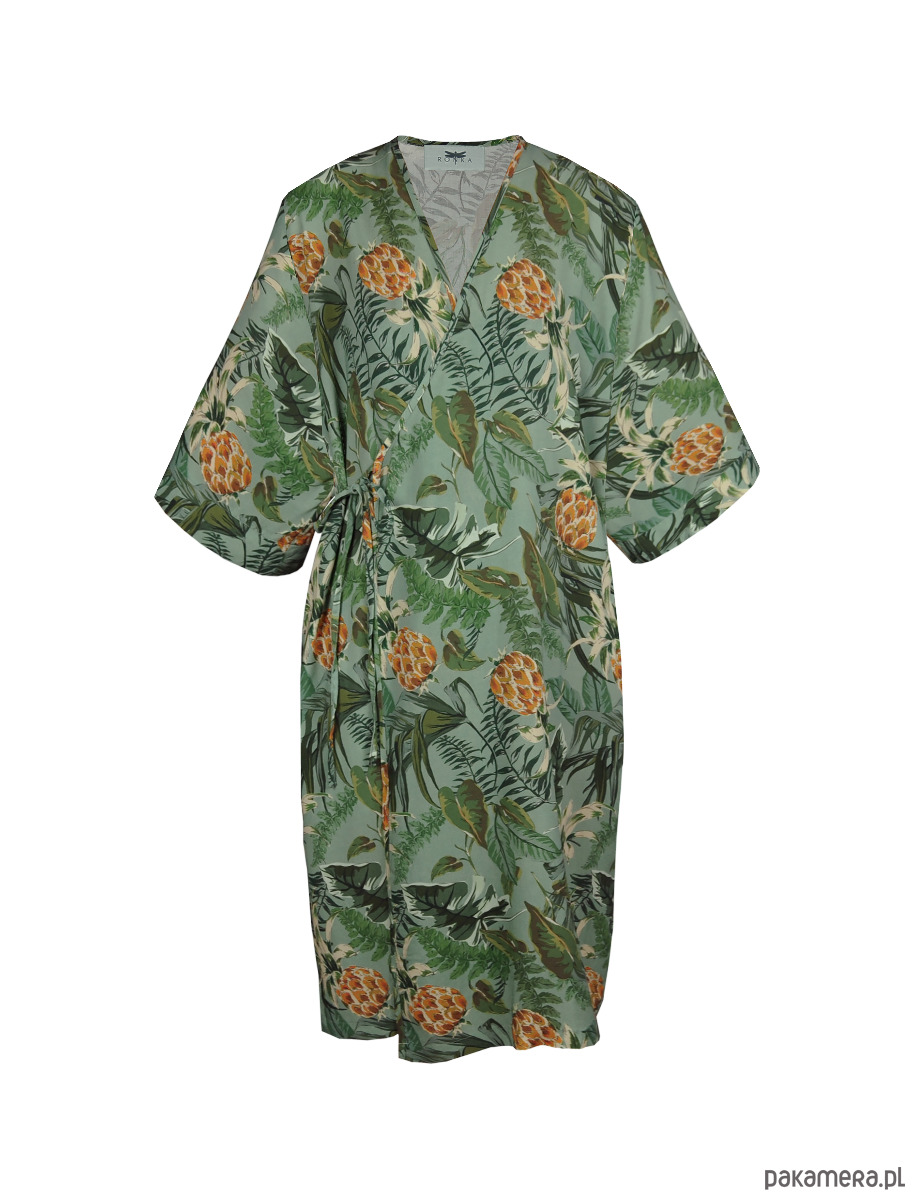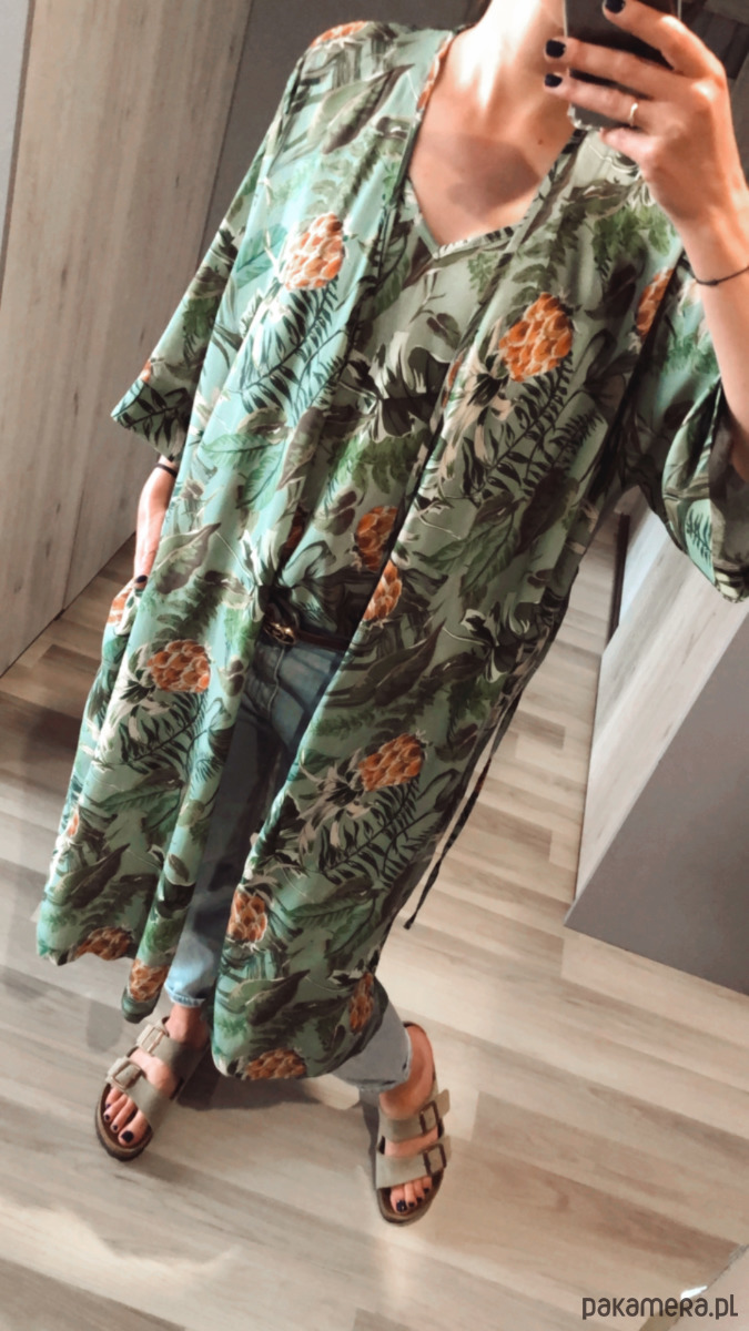To kimono prezentuje się genialnie na plaży w wersji rozwiązanej na strój kąpielowy, ale uwierzcie, że w wersji sukienki wieczorową porą z kowbojkami lub delikatnymi klapkami będzie wyglądać równie zjawiskowo.