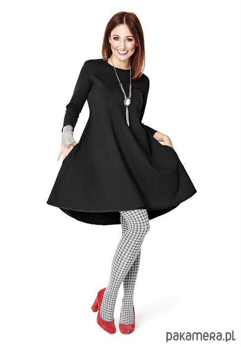 Lubisz swobodę a może chcesz ukryć brzuszek czy biodra,ten model będzie idealny dla Ciebie.Sukienka typu klosz wykonana z dzianiny 240g.Bardzo komfortowa w noszeniu.Dopasowana w ramionach i w biuście, poniżej rozkloszowana.Dzięki swojemu fasonowi idealnie dopasowuje się do różnych typów sylwetki.Posiada kieszenie, z tyłu zapinana na suwak.Sukienka ma dużo miejsca na biodra oraz brzuch dzięki czemu skutecznie maskuje.Przy wyborze rozmiaru proszę się bardziej sugerować rozmiarem góry oraz długością.Sukienka w 100% wyprodukowana w Polsce.W ofercie posiadamy także wersje dziecięce tego modelu,dzięki czemu Mama i Córka mogą być ubrane tak samo.Wykonana z wysokogatunkowych materiałów.Bardzo proszę zapoznać się z wymiarami.Rzeczy mierzone są na płasko, jednakże wymiary mogą się różnić +/- 2 cm.