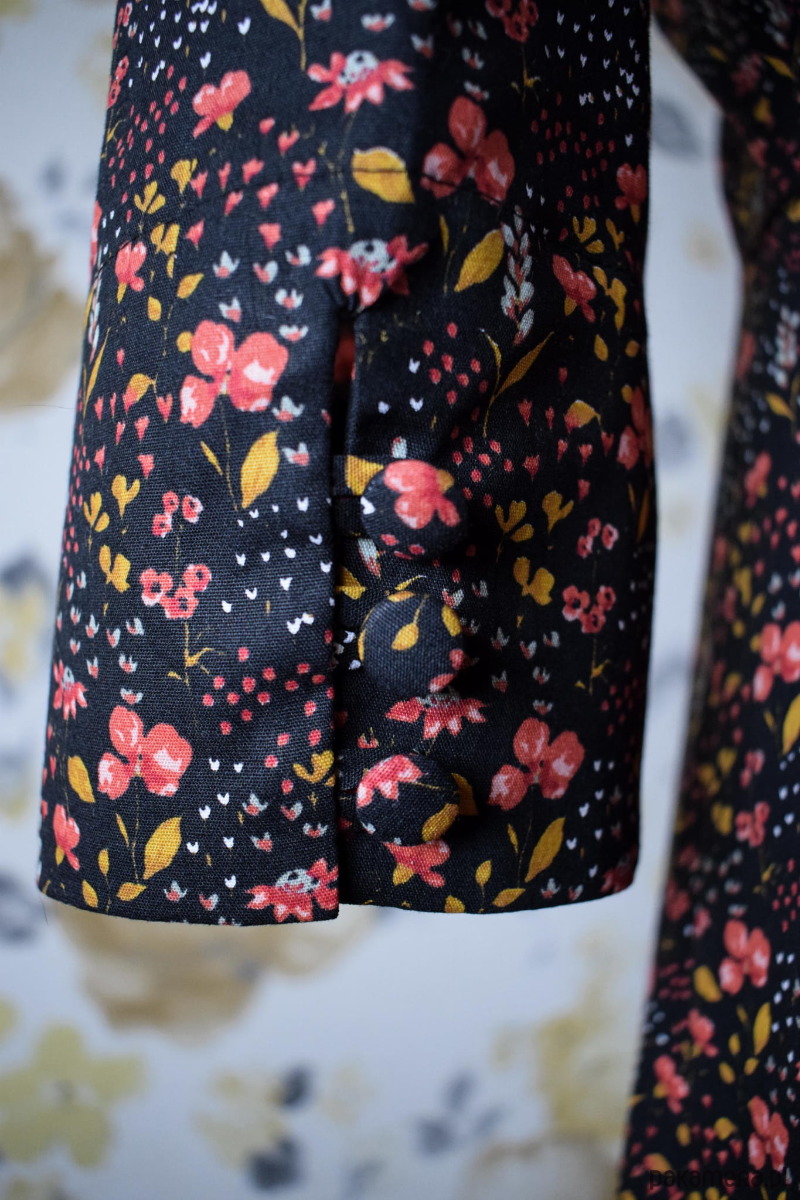Wzór nadrukowany na tkaninie – drobne kwiatki na czarnym tle to idealna propozycja na sezon jesienno-zimowy.