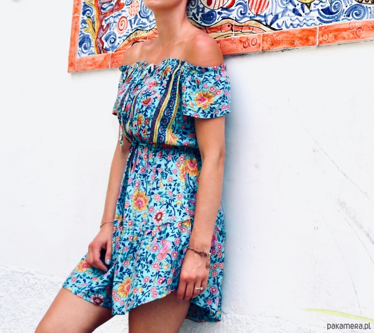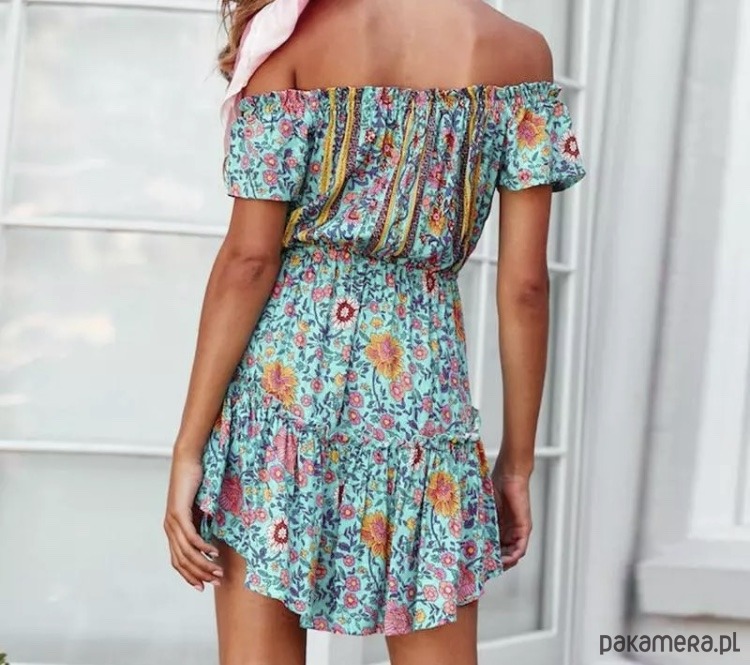 Przepiękna kolorowa sukienka w najmodniejszym stylu bohoo.Sukienka bez ramiączek w kwieciste wzory.Bardzo dziewczęca.65% cotton 35% polyester