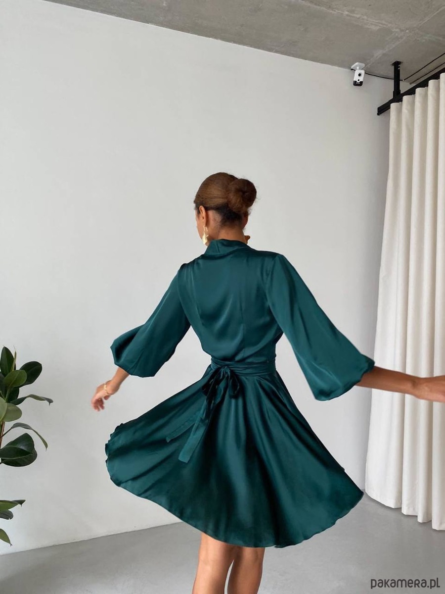 Kopertowa sukienka ELIZA z Armani jedwabiu z bufiastymi rękawami.