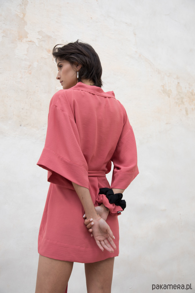 Sukienka o kimonowym kroju. Zawiązywana paskiem. Rękaw szeroki, luźny. Występuje w kolorze ceglastym oraz czarnym. Występuje w dwóch rozmiarach U oraz XL.