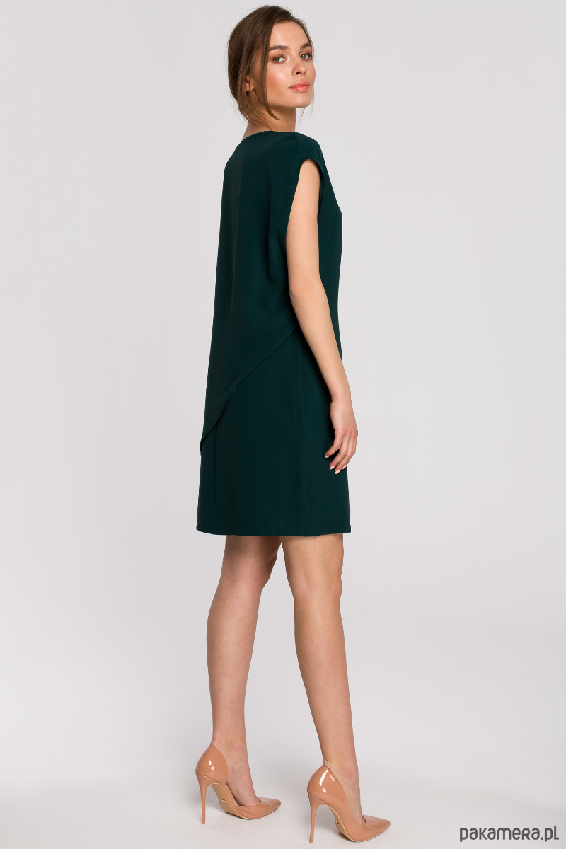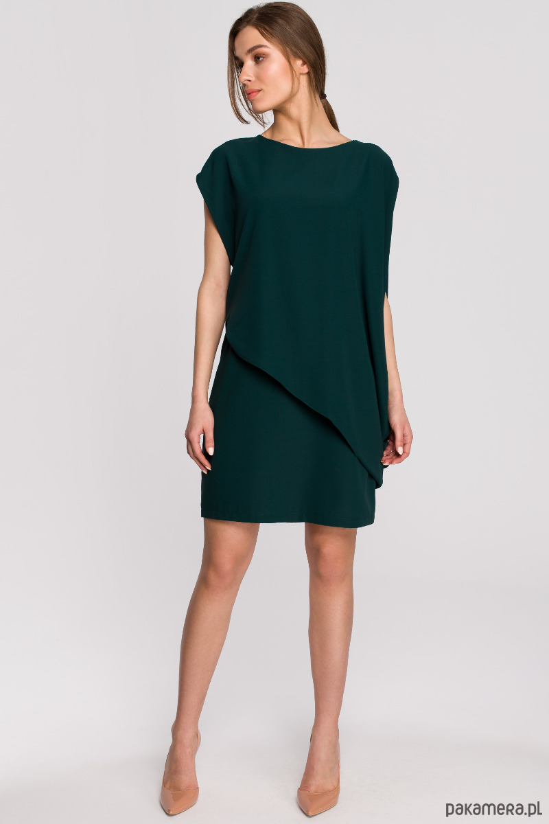 Ta sukienka ma niezliczona listę zalet. Komfortowy prosty krój i długość lekko nad kolano. Dodatkowo zaprojektowana została warstwowo - wierzchnia, asymetryczna warstwa sięga linii bioder, dzięki czemu sukienka pasuje na każdą sylwetkę.