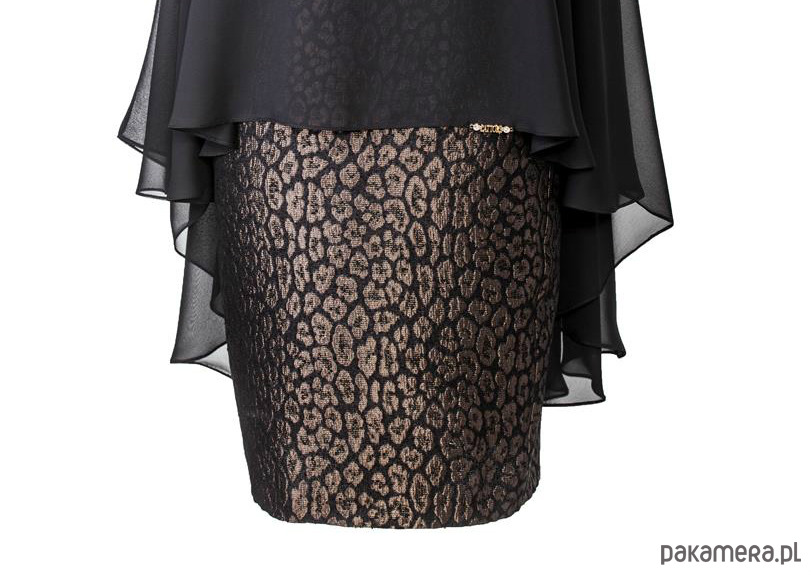 Elegancka sukienka z kolekcji jesień zima 2016/17. Spodnia część sukienki dopasowana, na wierzchu oryginalna szyfonowa narzutka o swobodnym kroju. Maskuje ewentualne niedoskonałości sylwetki i nadaje całości nietuzinkowy charakter. Idealny fason na wesele, ślub cywilny, karnawał.