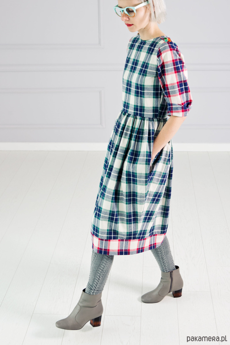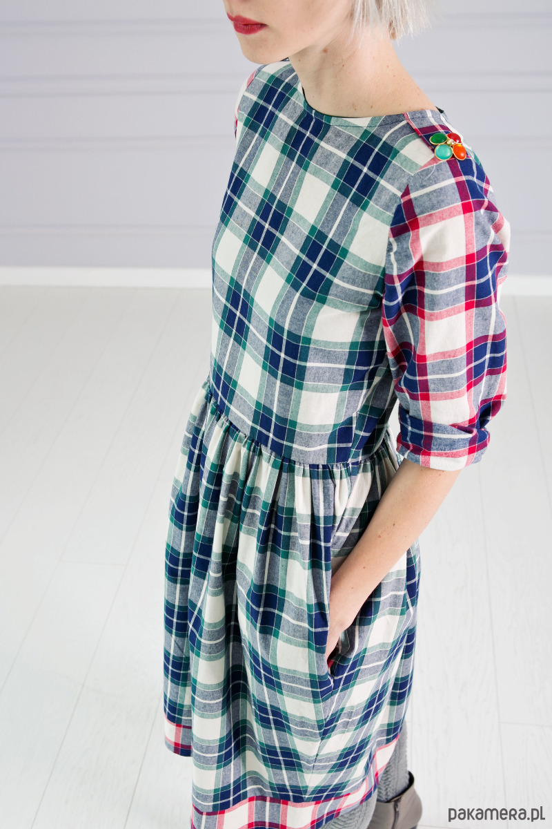 Sukienka z łączonych materiałów w stylu flanela.