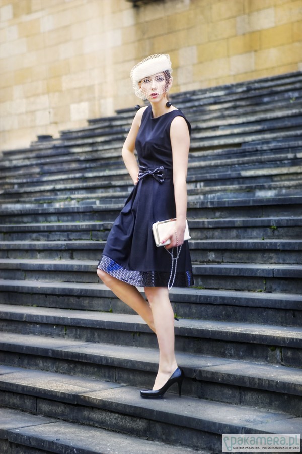 Sukienka uszyta jest z doskonałej jakości, grubszej, czarnej tkaniny. Tkanina posiada lycrę. Sukienka ma kobiecy fason, z dopasowaną talia i rozkloszowanym dołem. Ozdobą sukienki jest pasek z cekinową kokardą oraz cekinowa listwa wykańczająca dół sukienki. PRODUKT POLSKI Dostępne rozmiary: 34(XS), 36(S), 38(M), 40(L), 42(XL)
