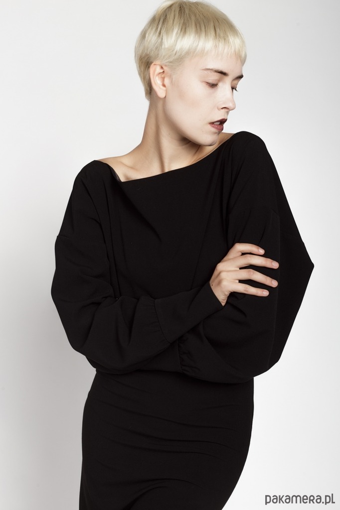 Sukienka z szorokimi rękawami zapinanymi na zamki przy mankietach.