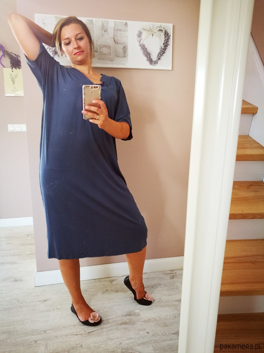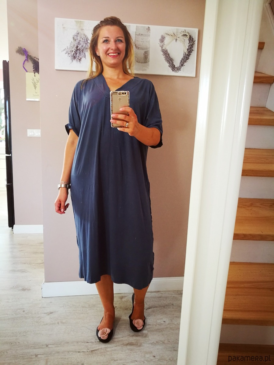 Sukienka midi z cienkiego materiału w stylu oversize.
