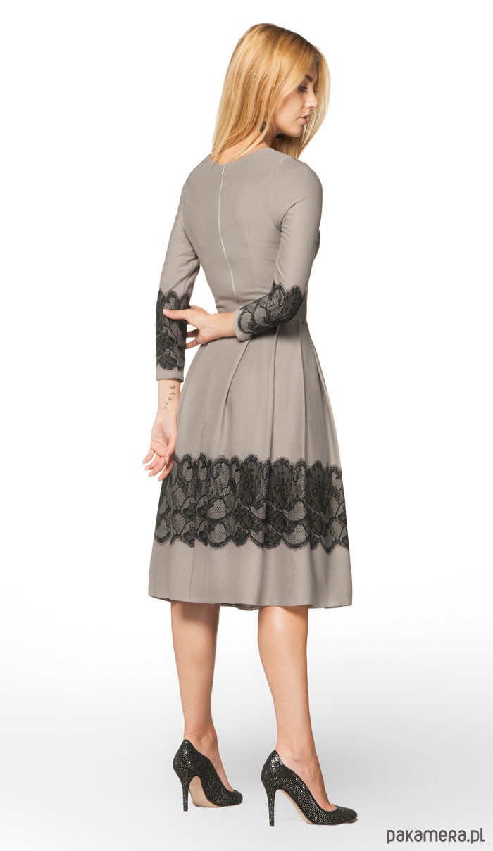 na rękawkach, oraz na rozkloszowanym dole sukienki.