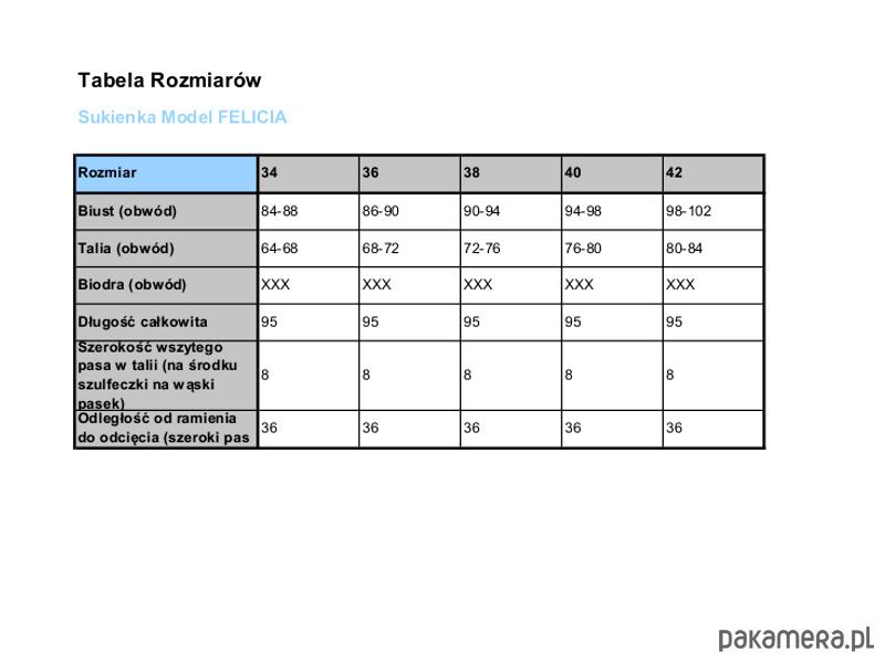 Modelka ma wzrost 175 cm. Prezentuje rozmiar 34.