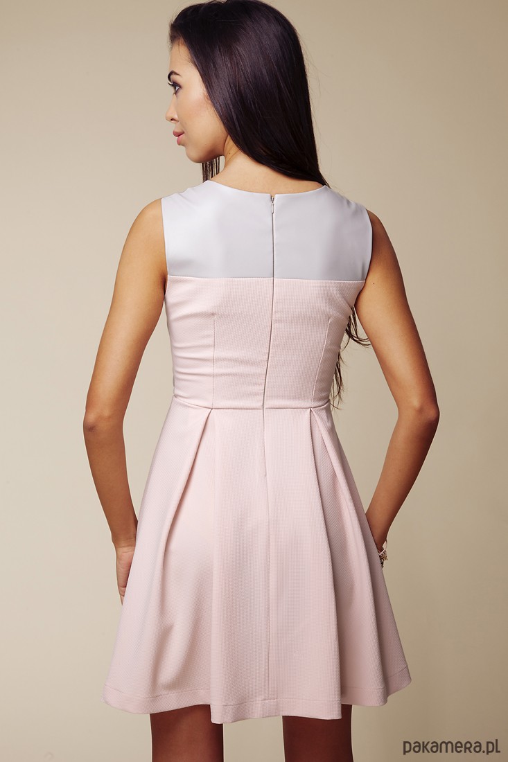 Szaro różowa sukienka z siatką Kod produktu: ASU0006 Kolor: Szary/ różowy Skład: materiał główny 70% poliester, 27% wiskoza, 3% elastan; materiał dodatkowy 100% poliester pokryty poliuretanem Sukienka wykonana z szarej siatki, szarej skóry i różowego eleganckiego materiału. Zapinana od tyłu na kryty zamek. Długość sukienki ok. 87 cm.