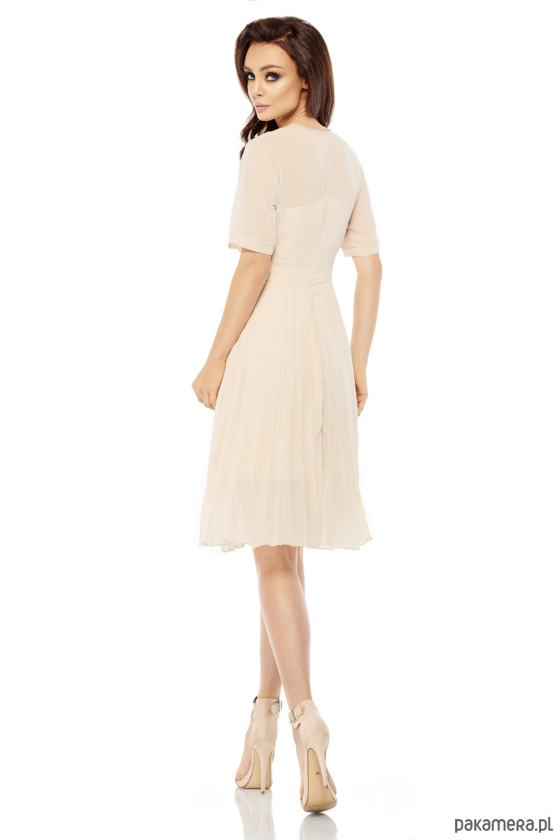 Zwiewna sukienka kopertowa to idealna propozycja dla każdej kobiety, która uwielbia akcentować swoją kobiecość. Zwiewna sukienka kopertowa wykonana jest z plisowań, co dodaje jej lekkości i oryginalnego charakteru. Plisowana sukienka posiada transparentny krótki rękaw, idealny na lato. Zwiewna sukienka kopertowa to połączenie klasyki i nowoczesności, które doskonale sprawdzi się jako sukienka do biura lub sukienka wizytowa. Sukienka posiada podszewkę, co dodaje komfortu noszenia. Zwiewna sukienka kopertowa posiada pasek w talii, świetnie modelujący sylwetkę. Zwiewna sukienka kopertowa to propozycja dla wymagających kobiet, które docenią połączenie klasyki z nowoczesnością. Produkowana w Polsce sukienka jest gwarancją szyku i najwyższej jakości.