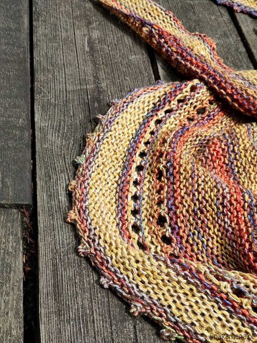Coś pod szyję, mała chustka/ szal na chłodne dni. Wykonanie ręczne- na drutach. Fantastyczna, miękka włóczka: bawełna, wełna wielbłądzia, kaszmir, którą wzbogaciłam cieniutkim merino i jedwabiem.