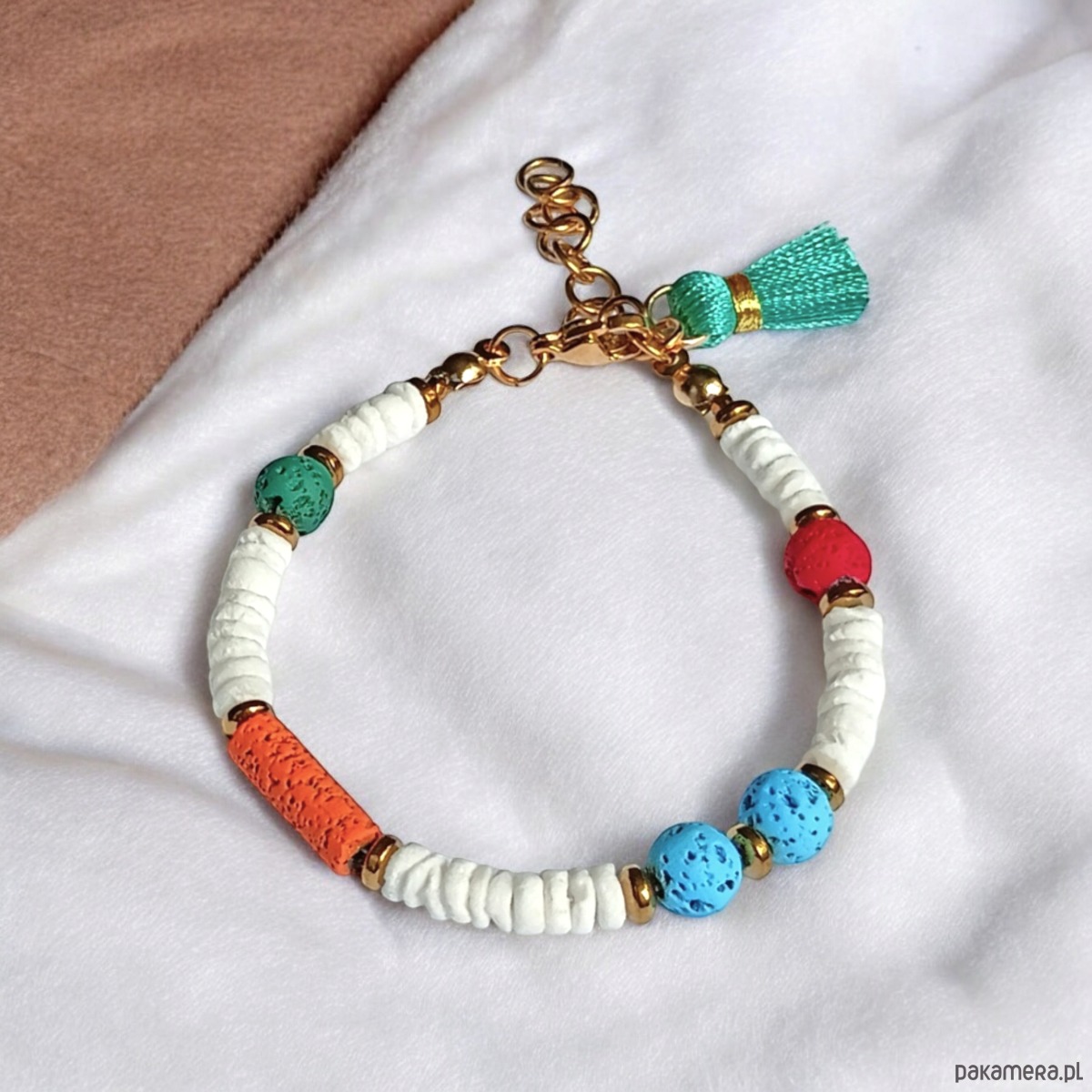 Summer collection: bransoletka : muszla biała i lawa multicolor