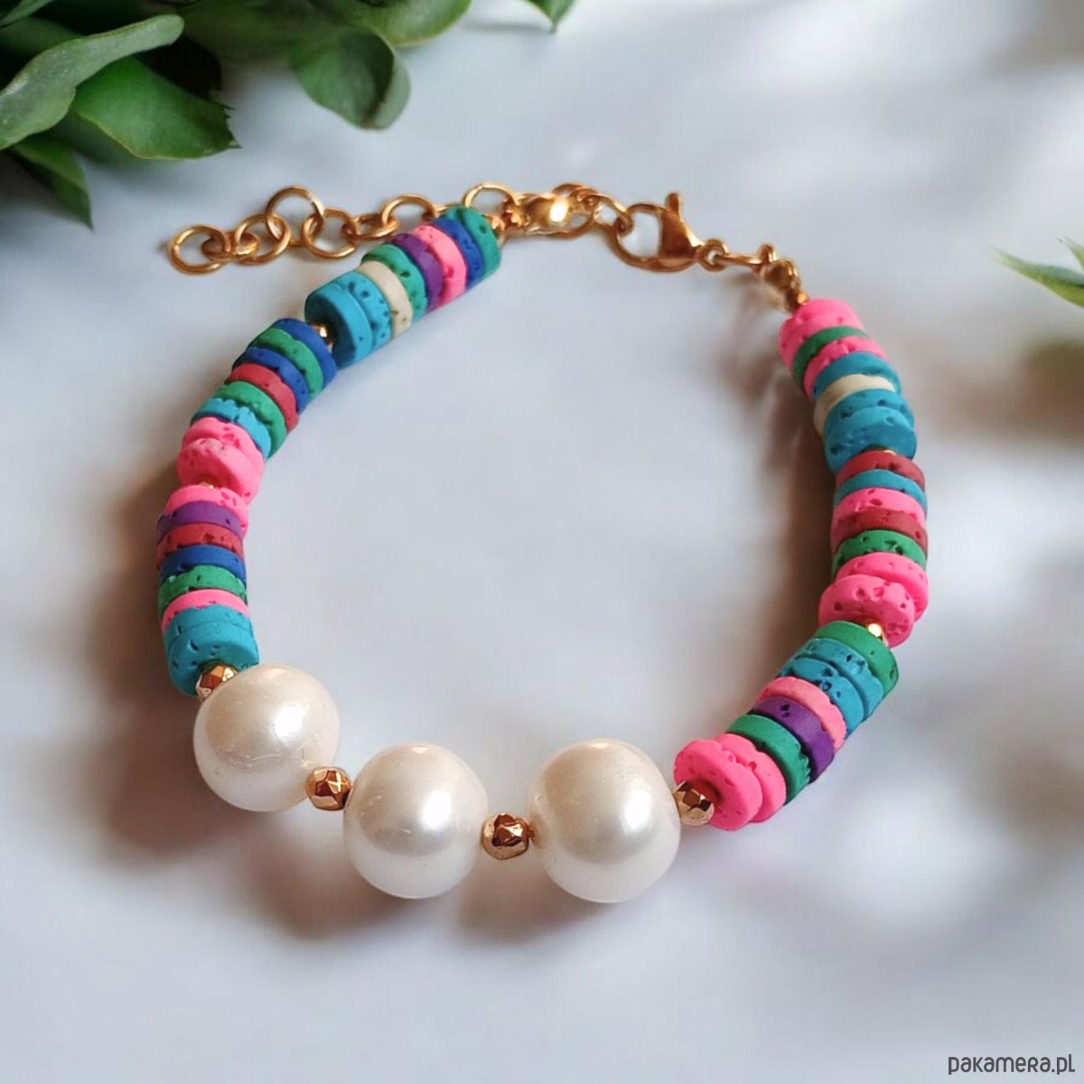 SUMMER COLLECTION : bransoletka : PERŁY i lawa
