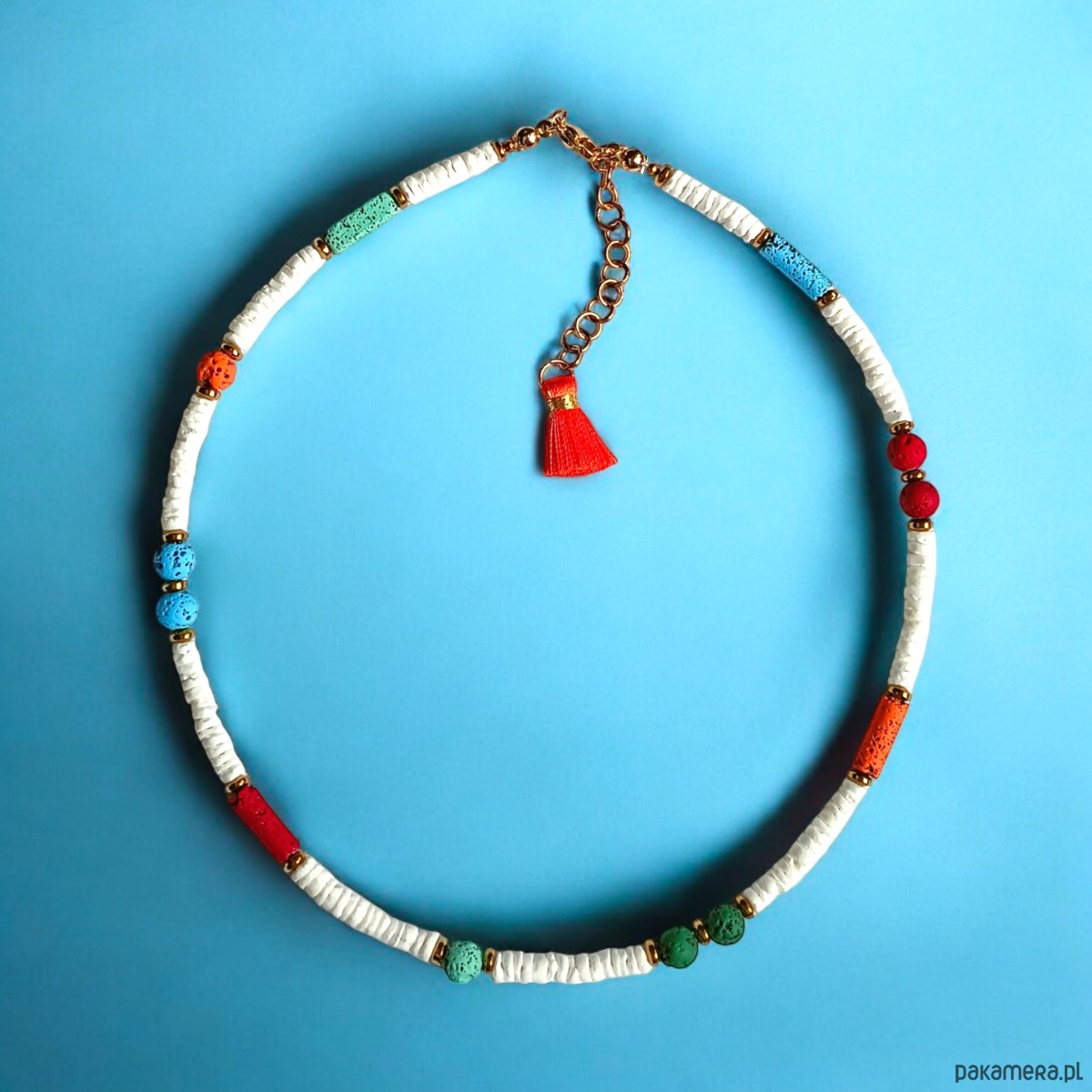 Summer collection: naszyjnik - choker : muszla biała i lawa multicolor