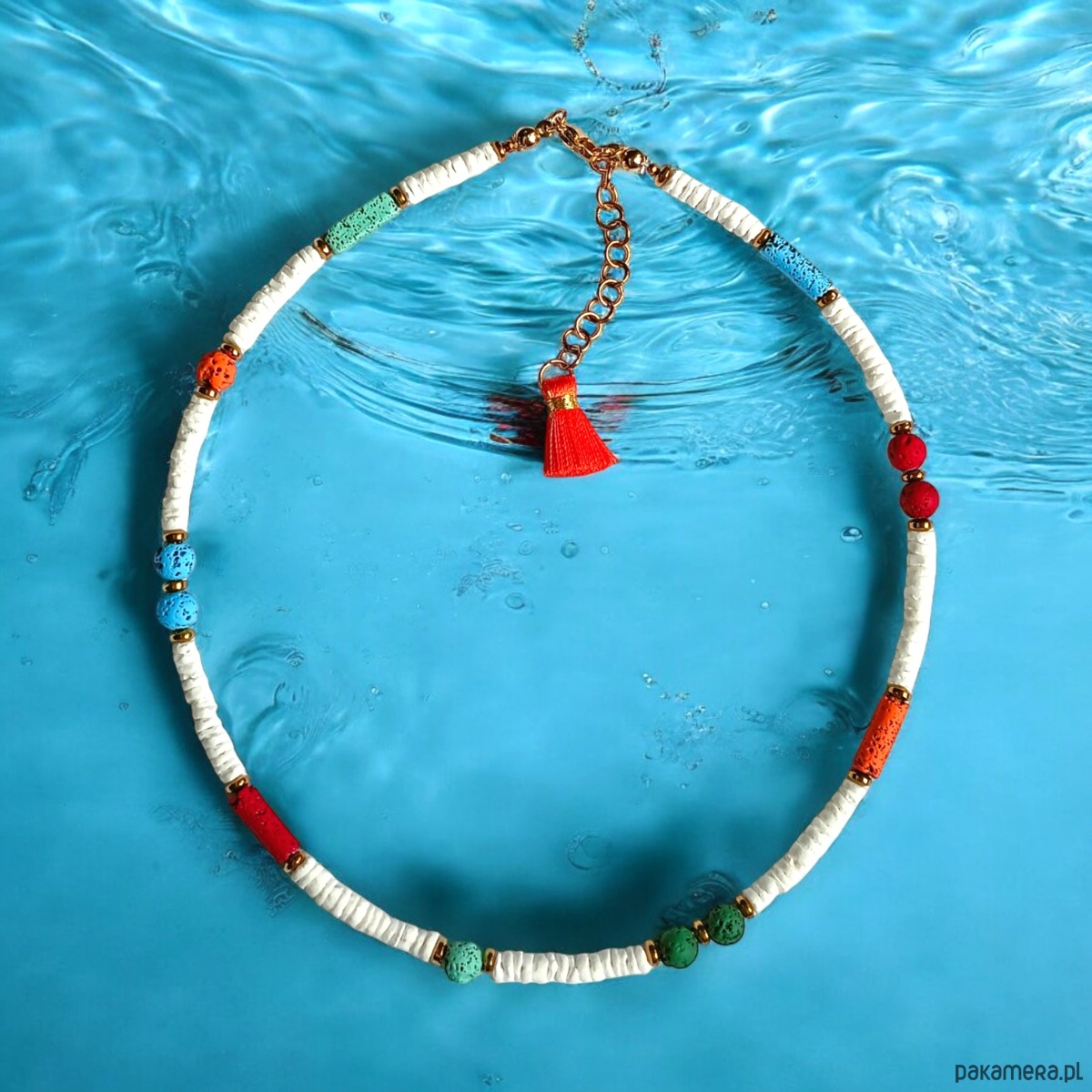 Summer collection: naszyjnik - choker : muszla biała i lawa multicolor