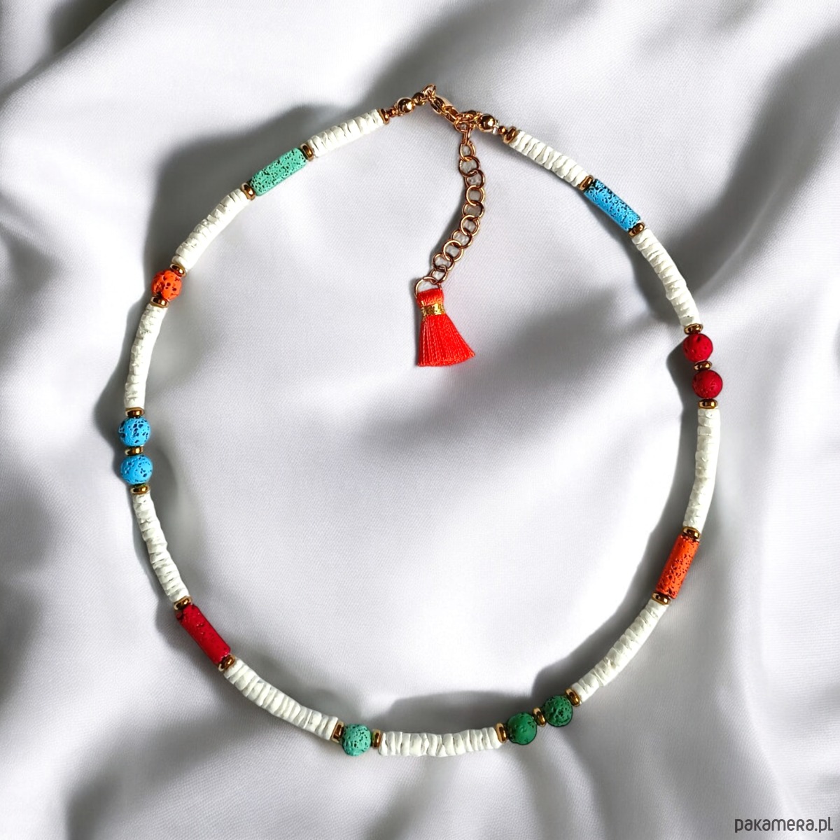 Summer collection: naszyjnik - choker : muszla biała i lawa multicolor
