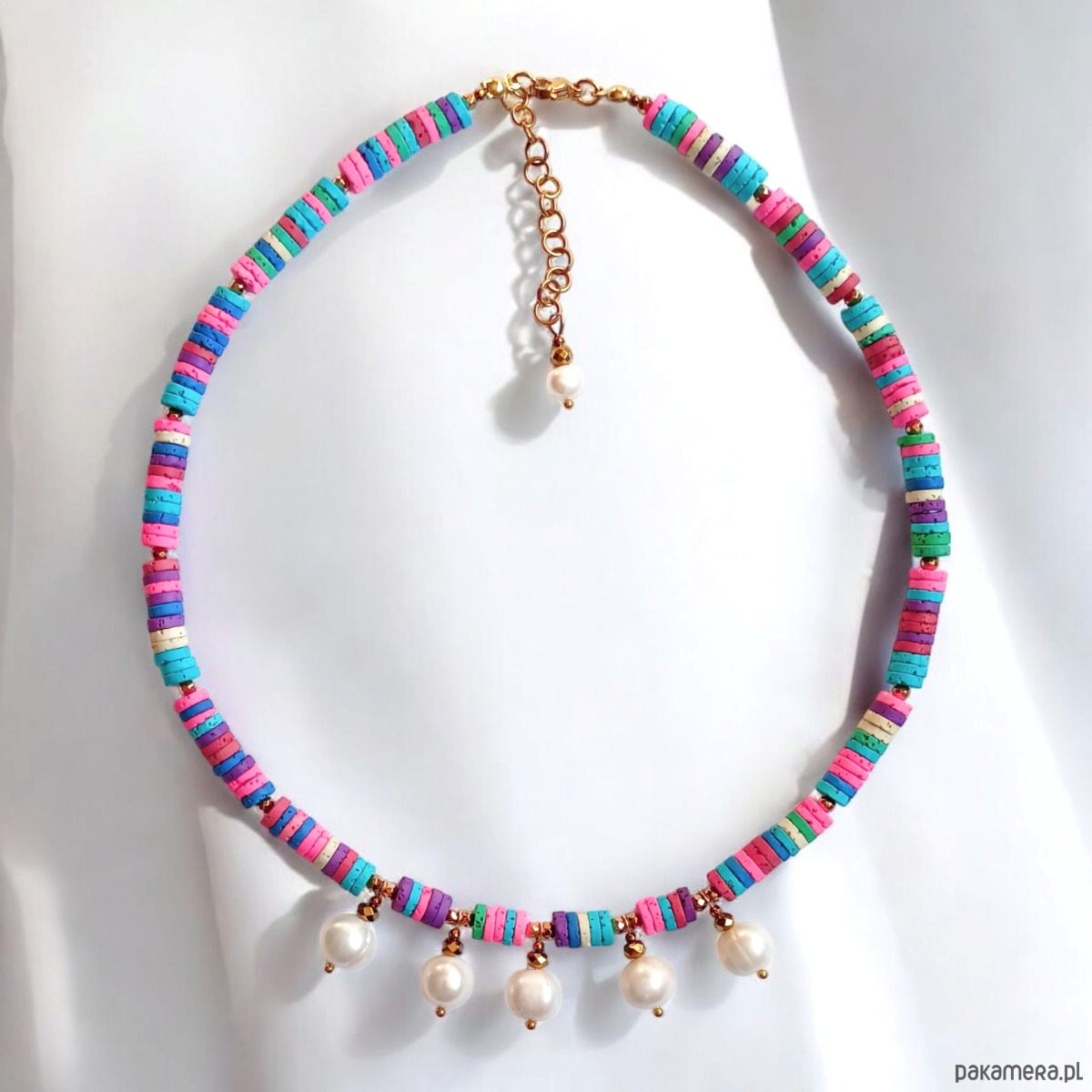 SUMMER COLLECTION naszyjnik : duże perły i kolorowa lawa