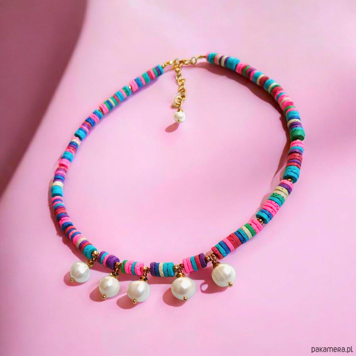 SUMMER COLLECTION naszyjnik : duże perły i kolorowa lawa