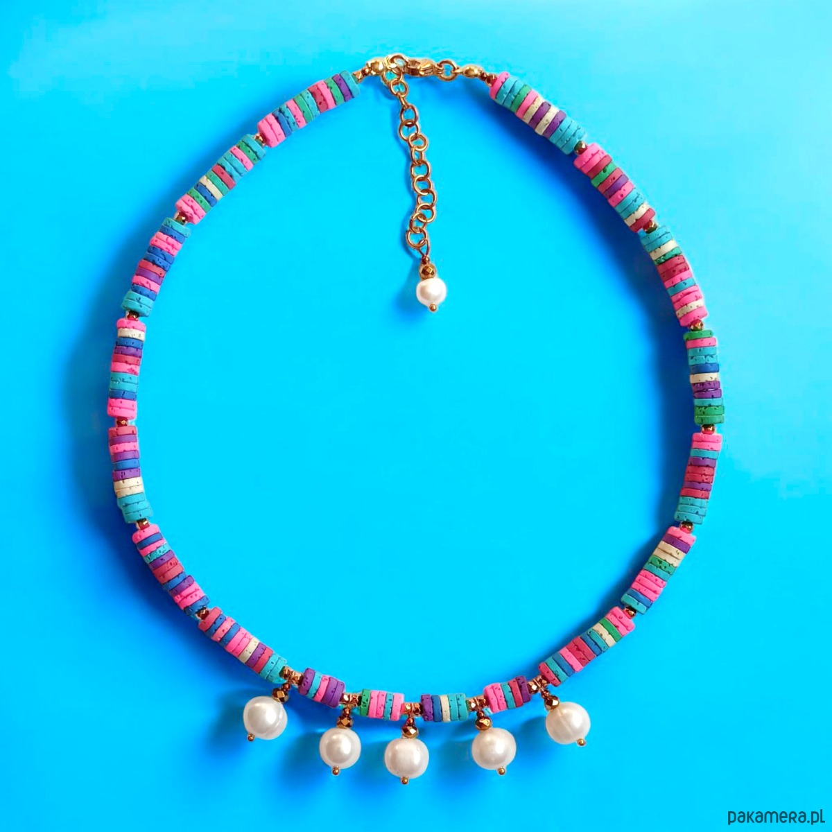SUMMER COLLECTION naszyjnik : duże perły i kolorowa lawa