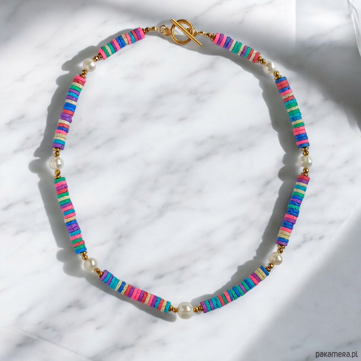 SUMMER COLLECTION naszyjnik : kolorowa lawa & perły