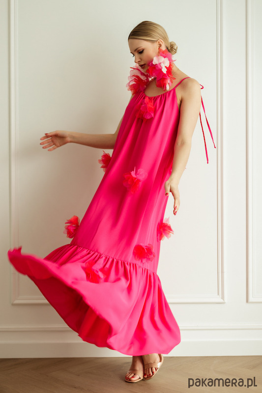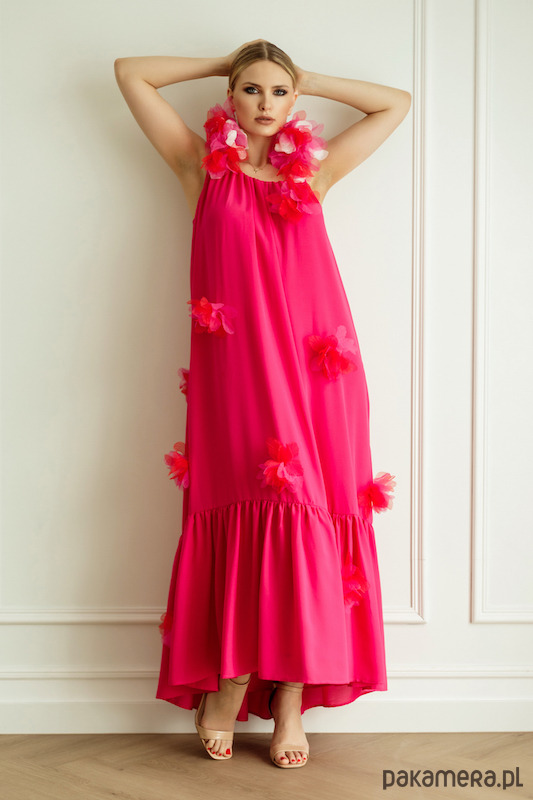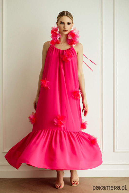 Sukienka w kolorze fuksji, podszewka również z tej samej tkaniny co wierzch sukienki