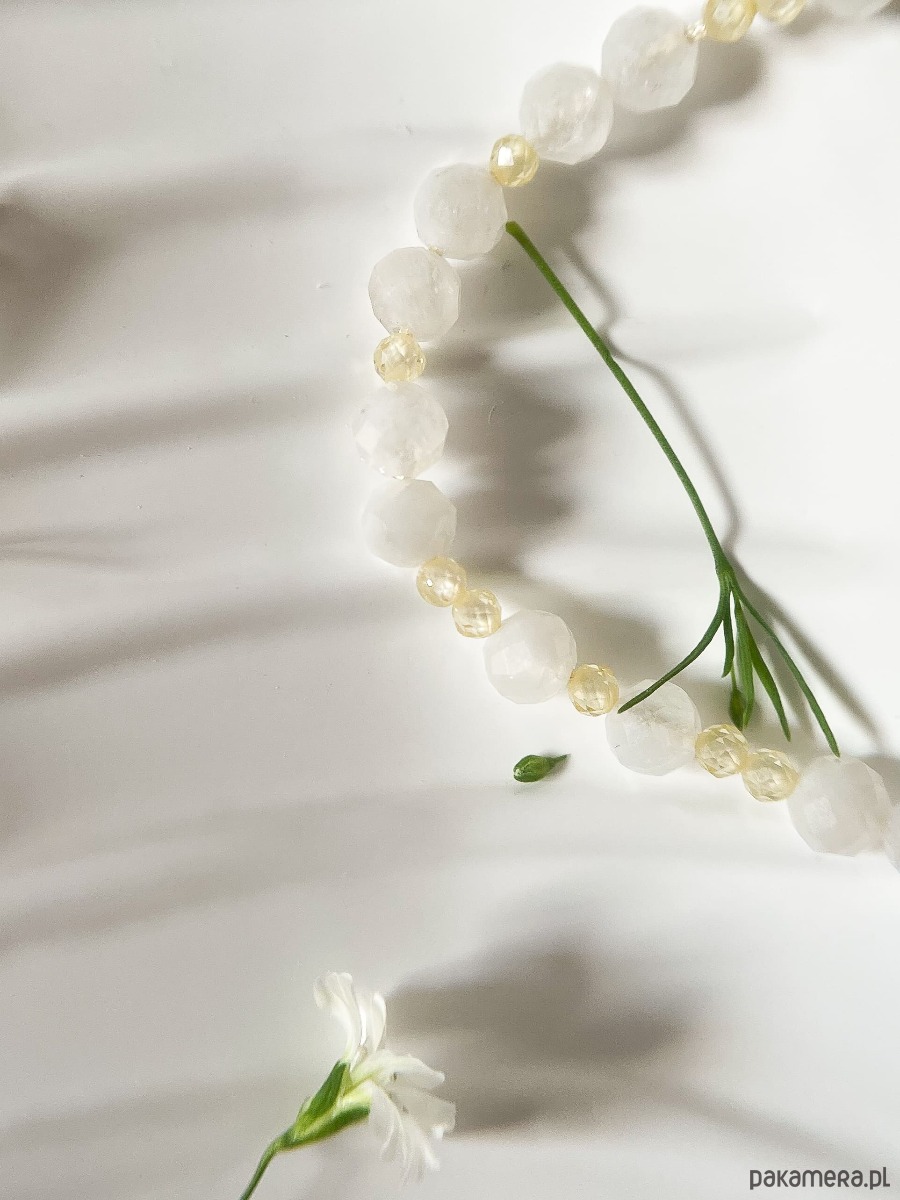 - Rodzaj kamienia: kwarc żółty, kamień księżycowy