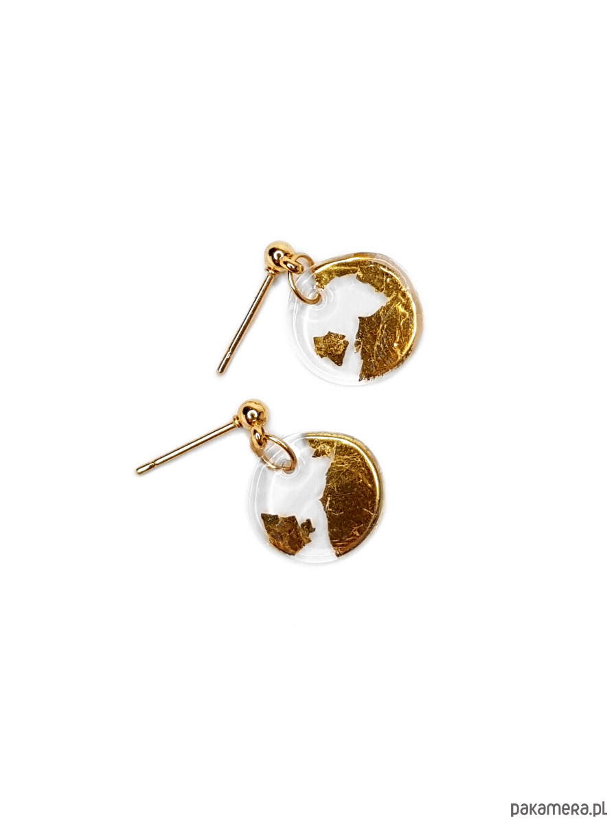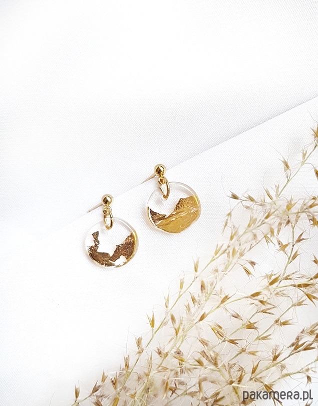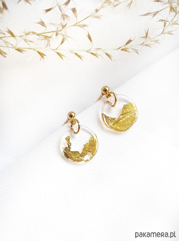 Bezbarwne szkło, z którego jest wykonane są kolczyki pięknie odbija światło, a drobinki złota nadają mu luksusowego charakteru. Do wykonania kolczyków zostało użyte szkło borokrzemowe. Szkło to charakteryzuje się dużą wytrzymałością i trwałością. To propozycja dla fanek minimalizmu i elegancji, które podążają własną ścieżką. W końcu klasyka nigdy nie wyjdzie z mody :)