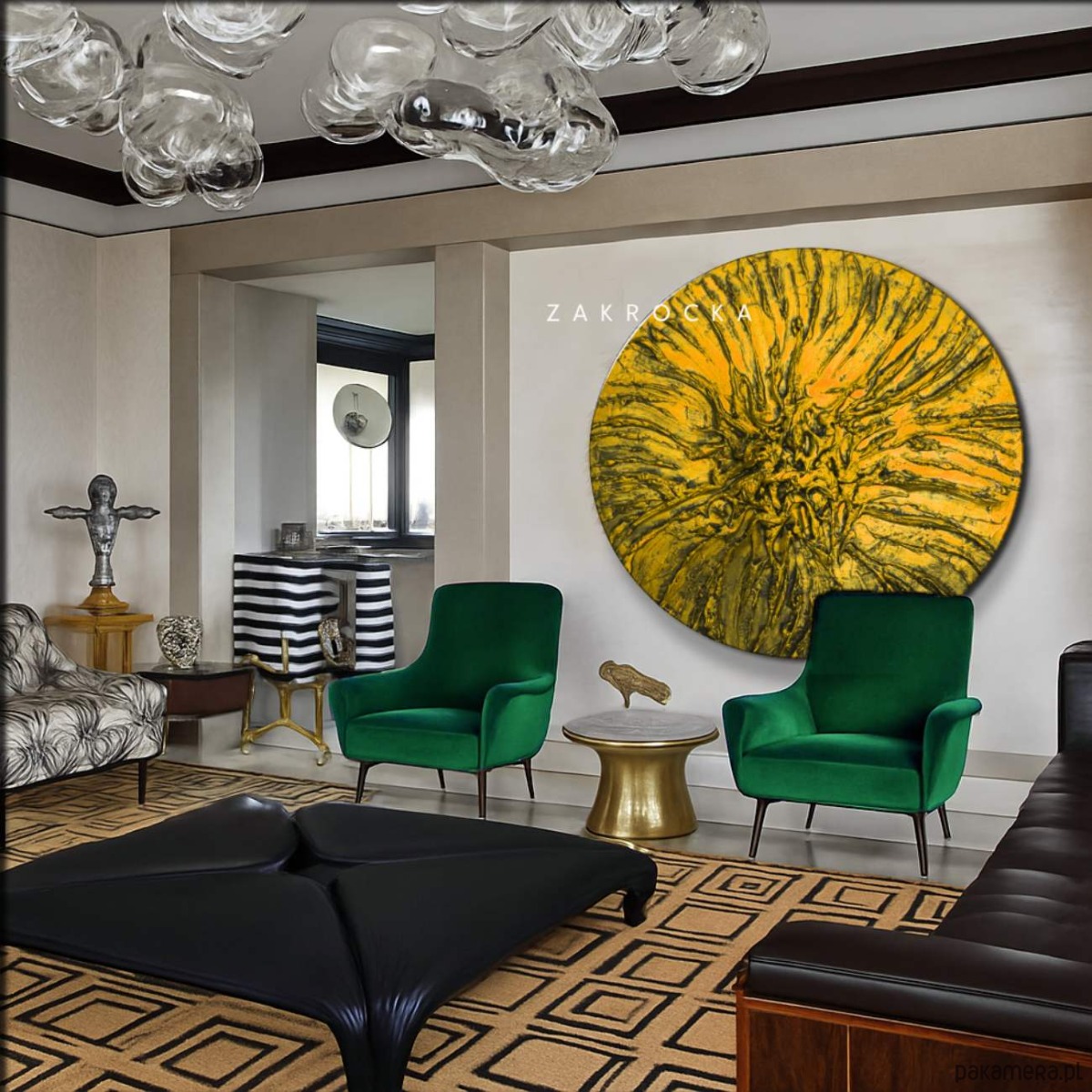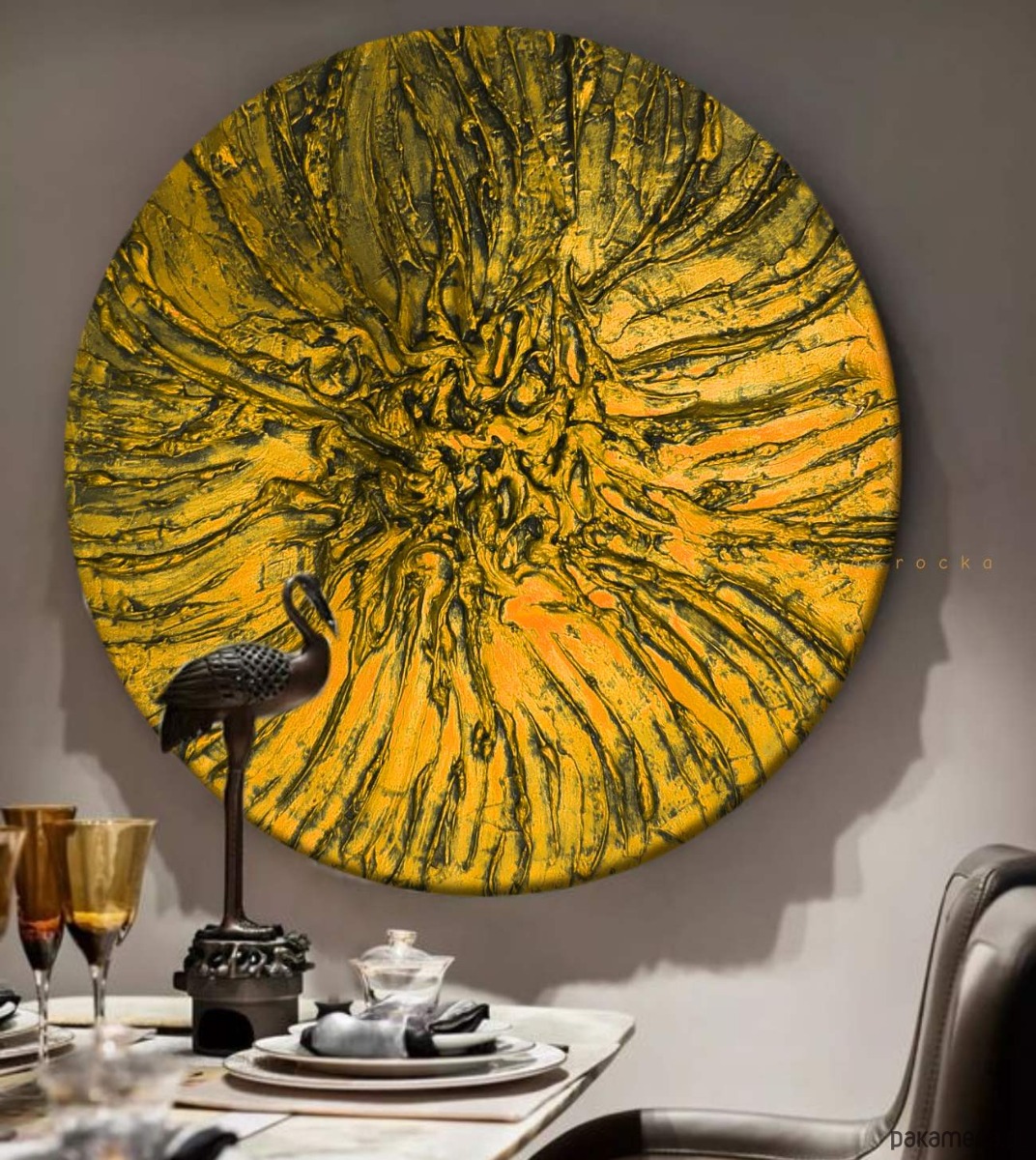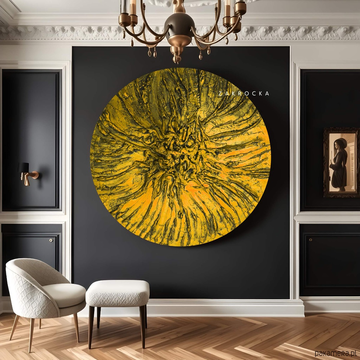 SUNNY - płaskorzeźba obraz okrągły koło zółta dekoracja